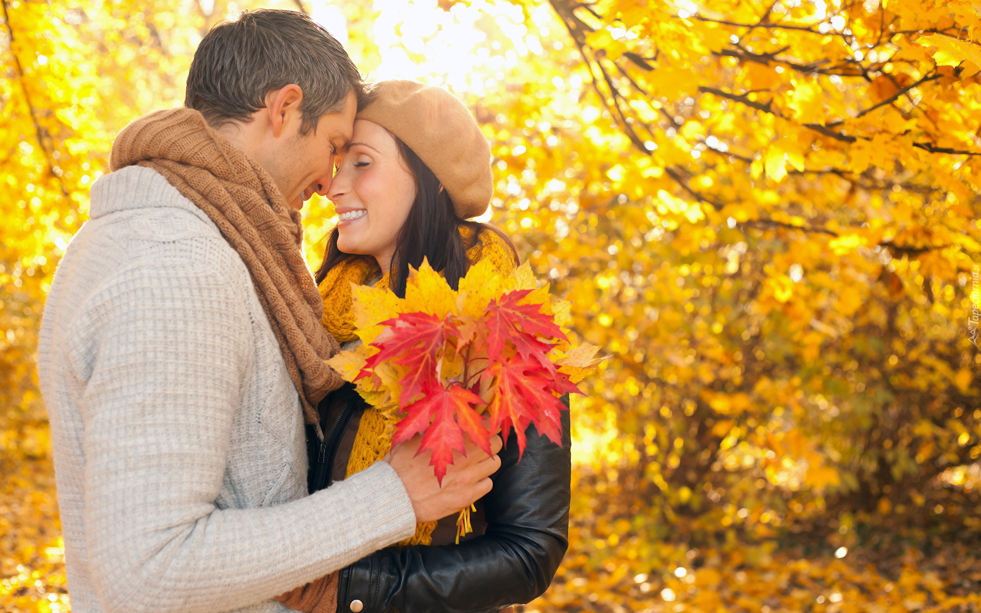 Edytor tapety: Zakochani w parku jesienią