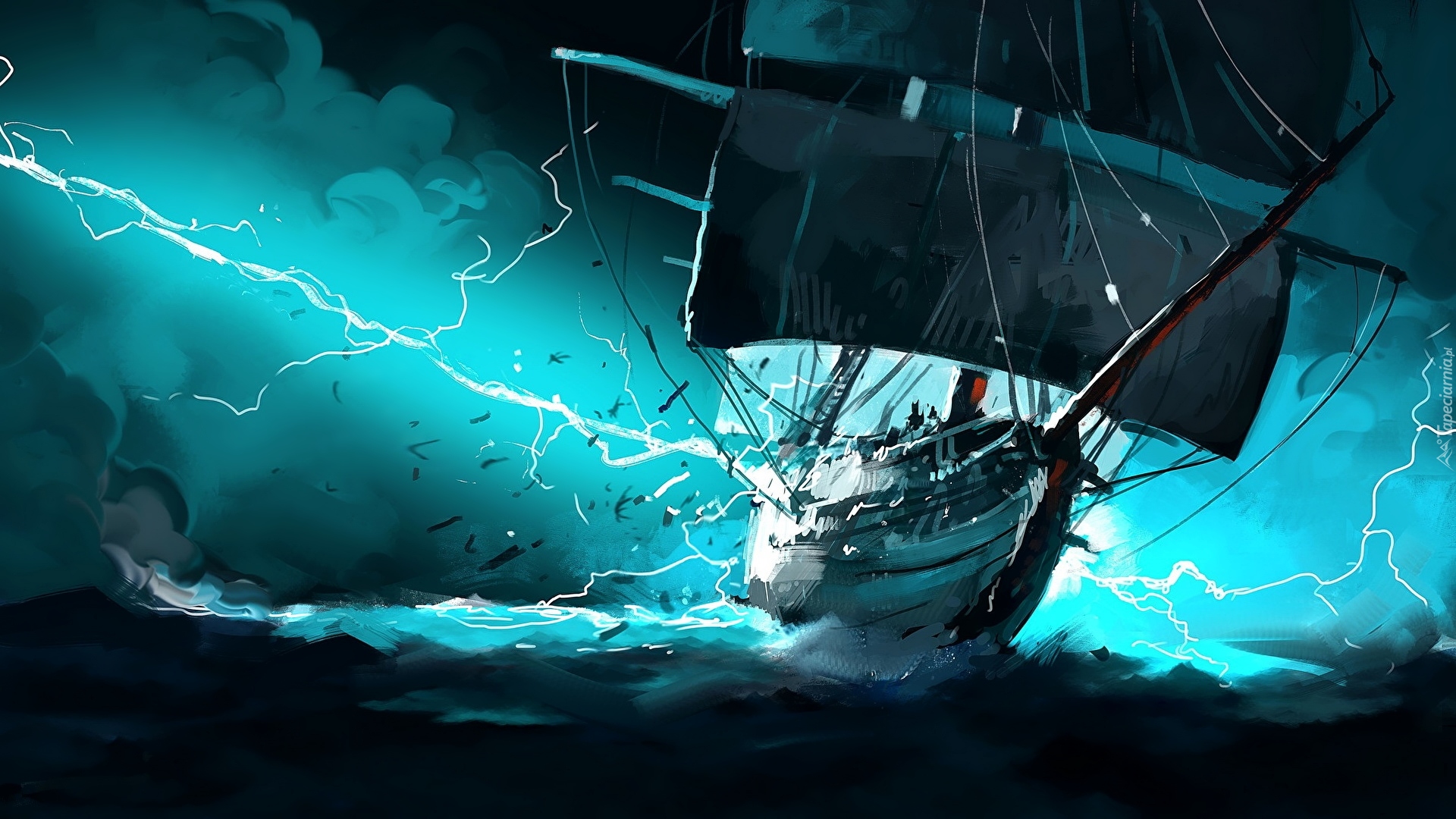 Edytor tapety: Żaglowiec na morzu w czasie burzy