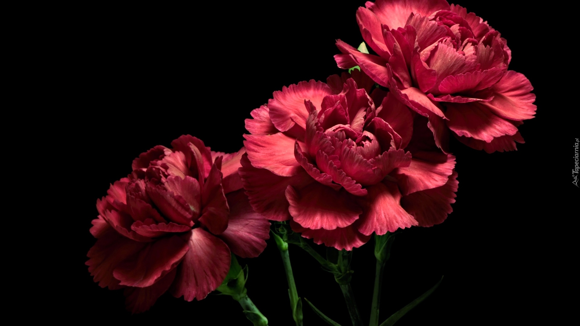 Edytor tapety: Trzy czerwone goździki