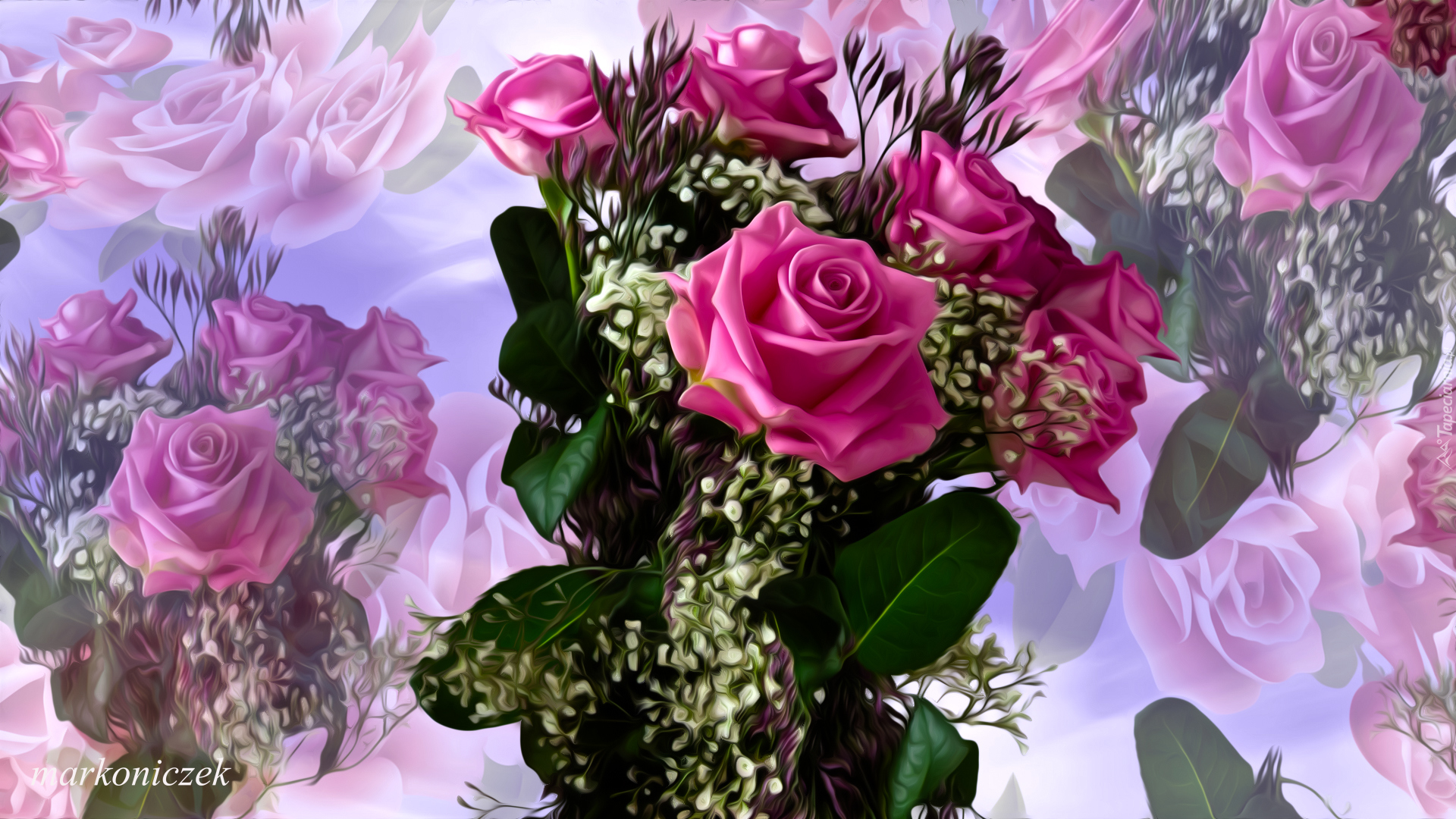 Edytor tapety: Bukiet róż w grafice na kolorowym tle