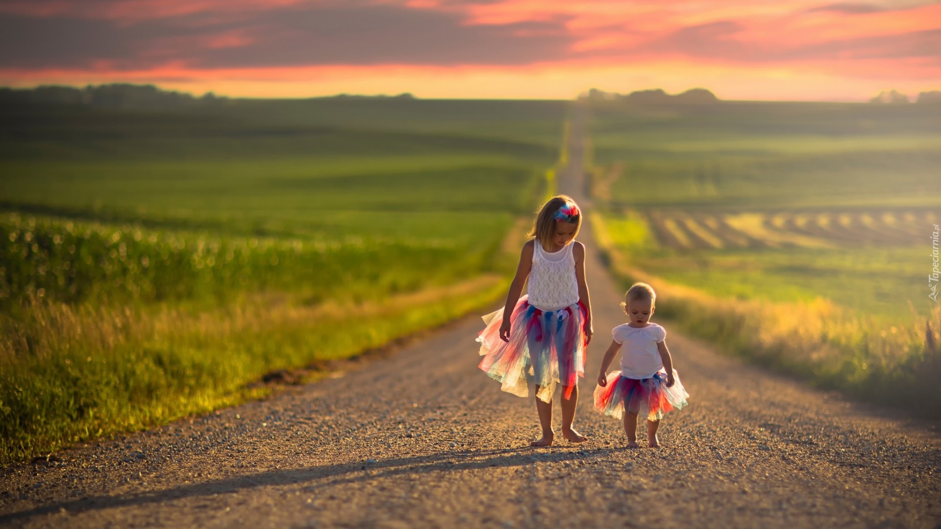 Edytor tapety: Dziewczynki w kolorowych spódniczkach na drodze