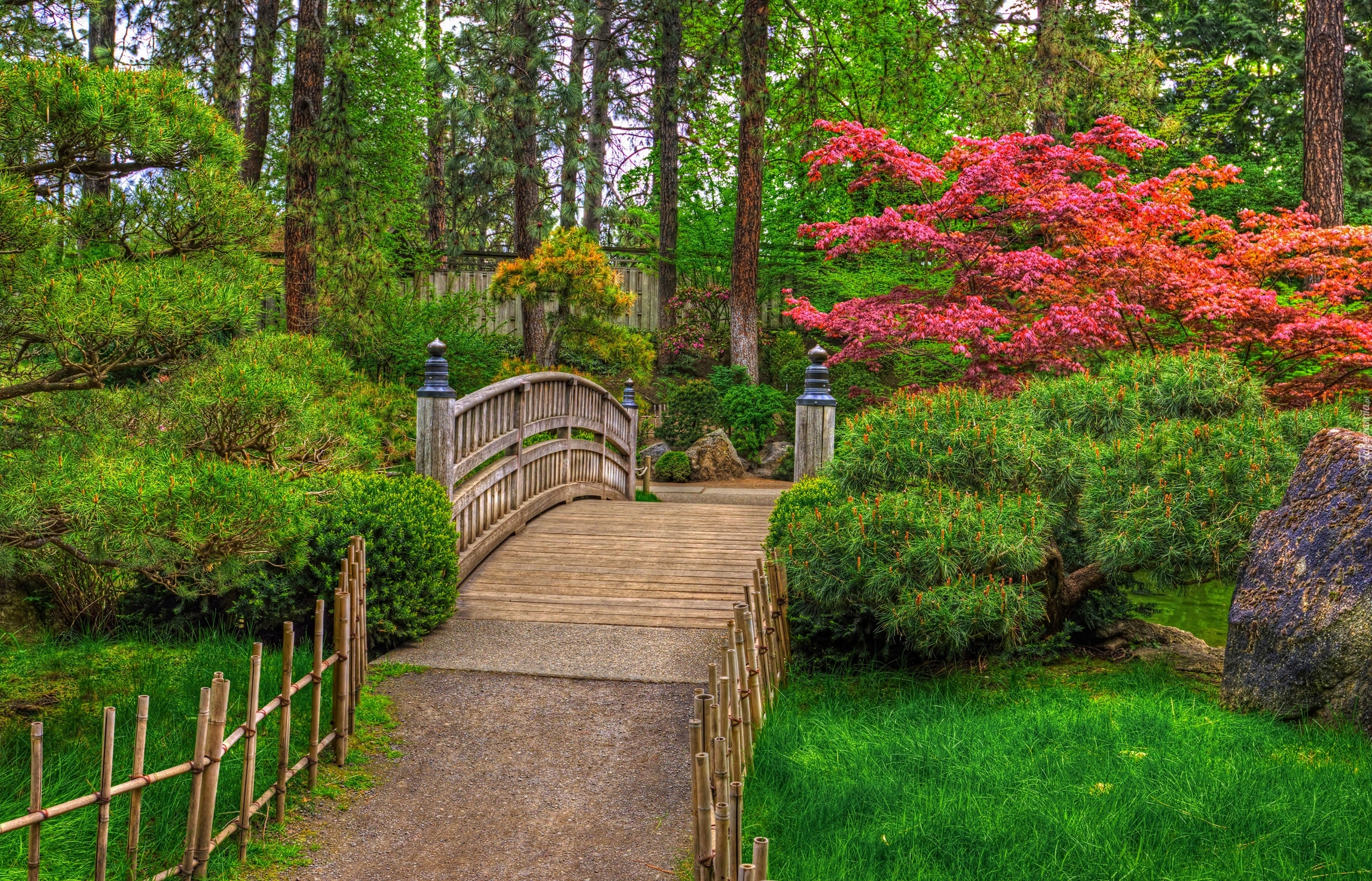 Edytor tapety: Drewniany mostek w ogrodzie