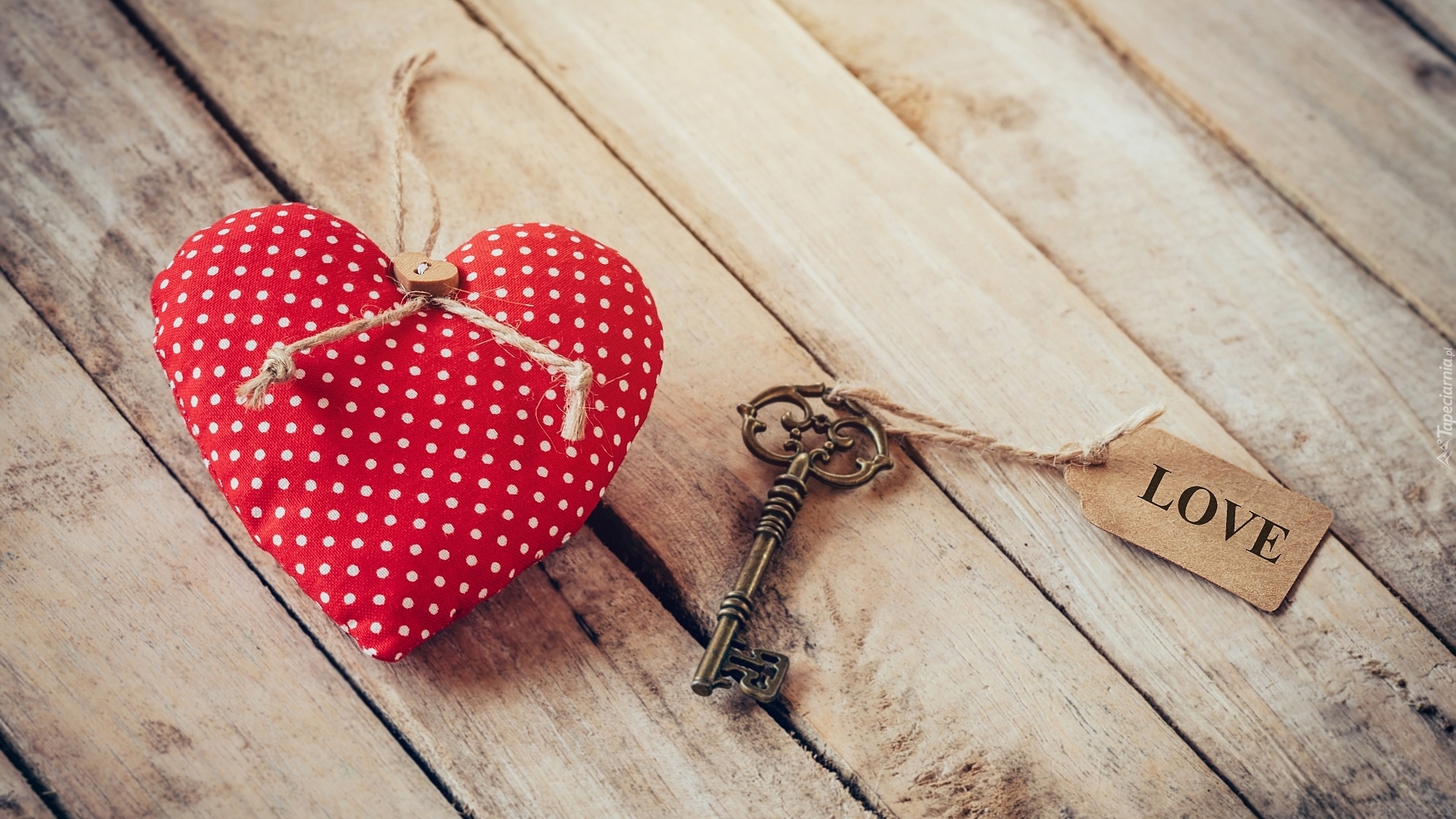 Edytor tapety: Zawieszka z napisem love na kluczu obok serca