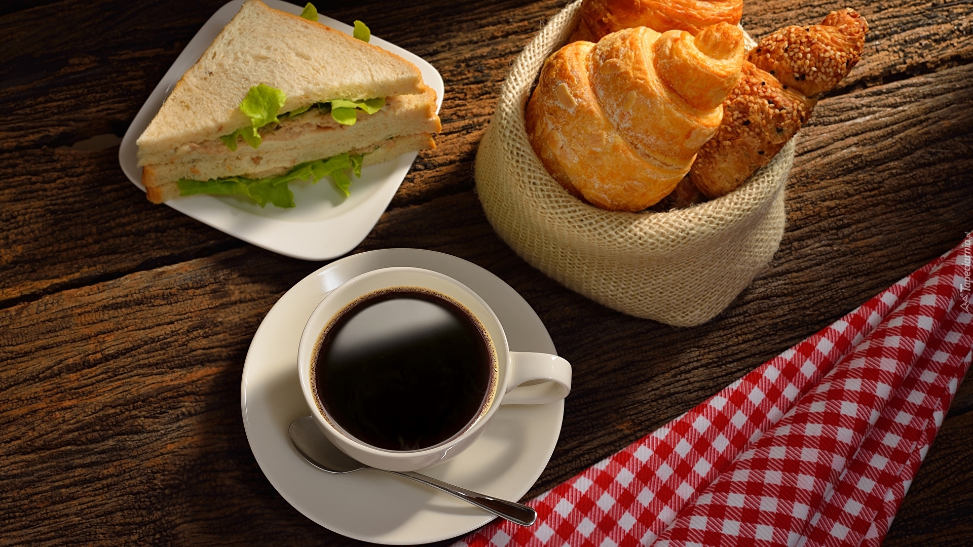 Edytor tapety: Rogaliki i kanapka obok kawy