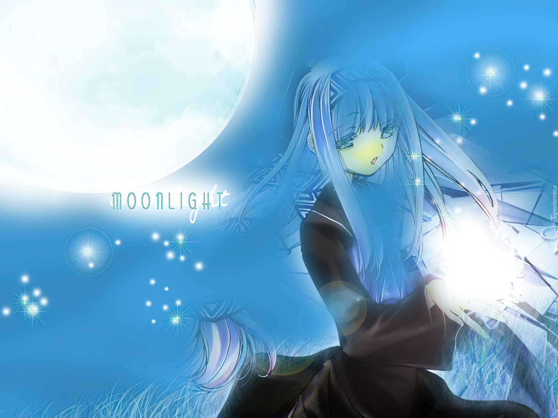 Edytor tapety: Erementar Gerad, gwiazdy, księżyc, dziewczynka, trawa
