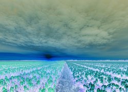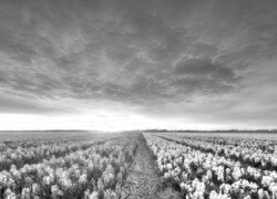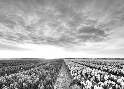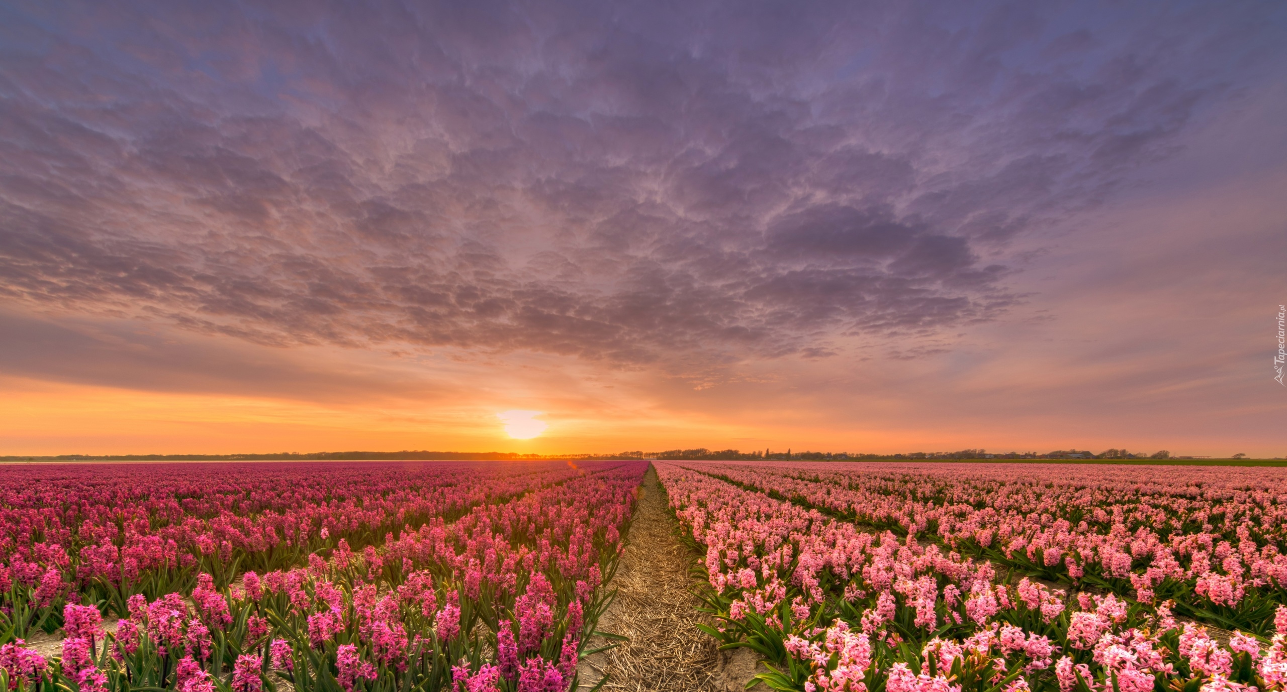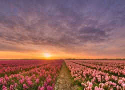 Edytor tapety: Plantacja hiacyntów w porannym słońcu