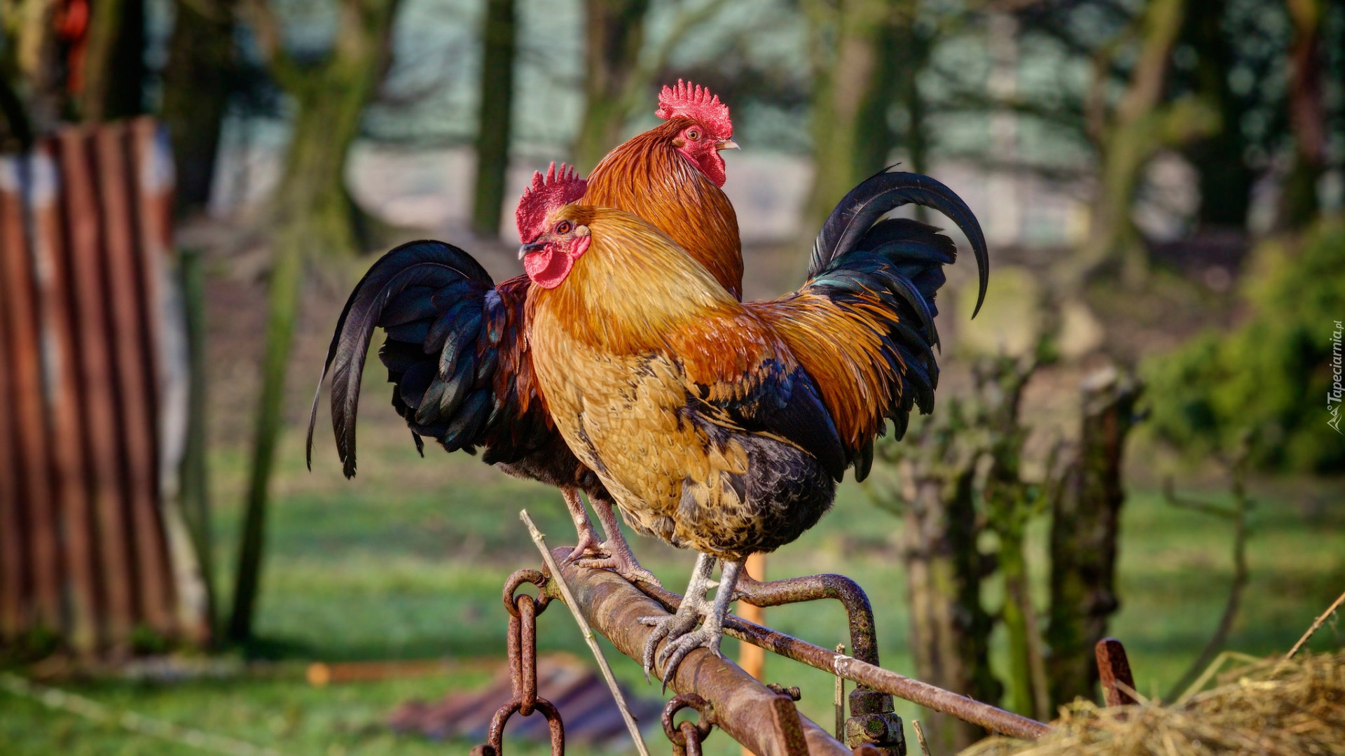 Edytor tapety: Dwa koguty na metalowym pręcie