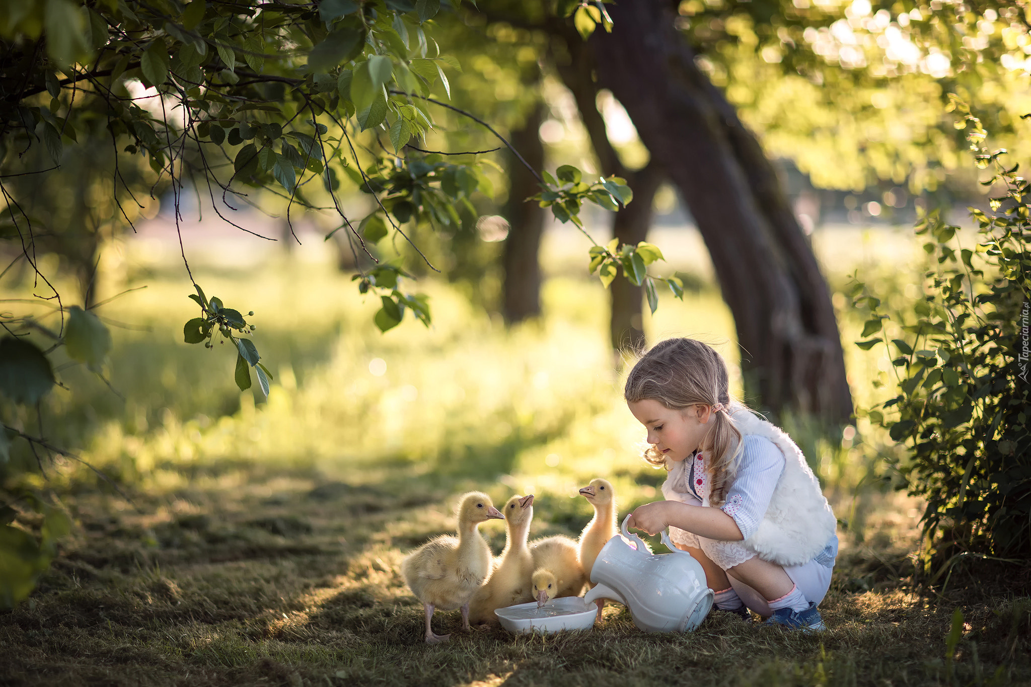 Edytor tapety: Dziewczynka z dzbankiem i gąskami