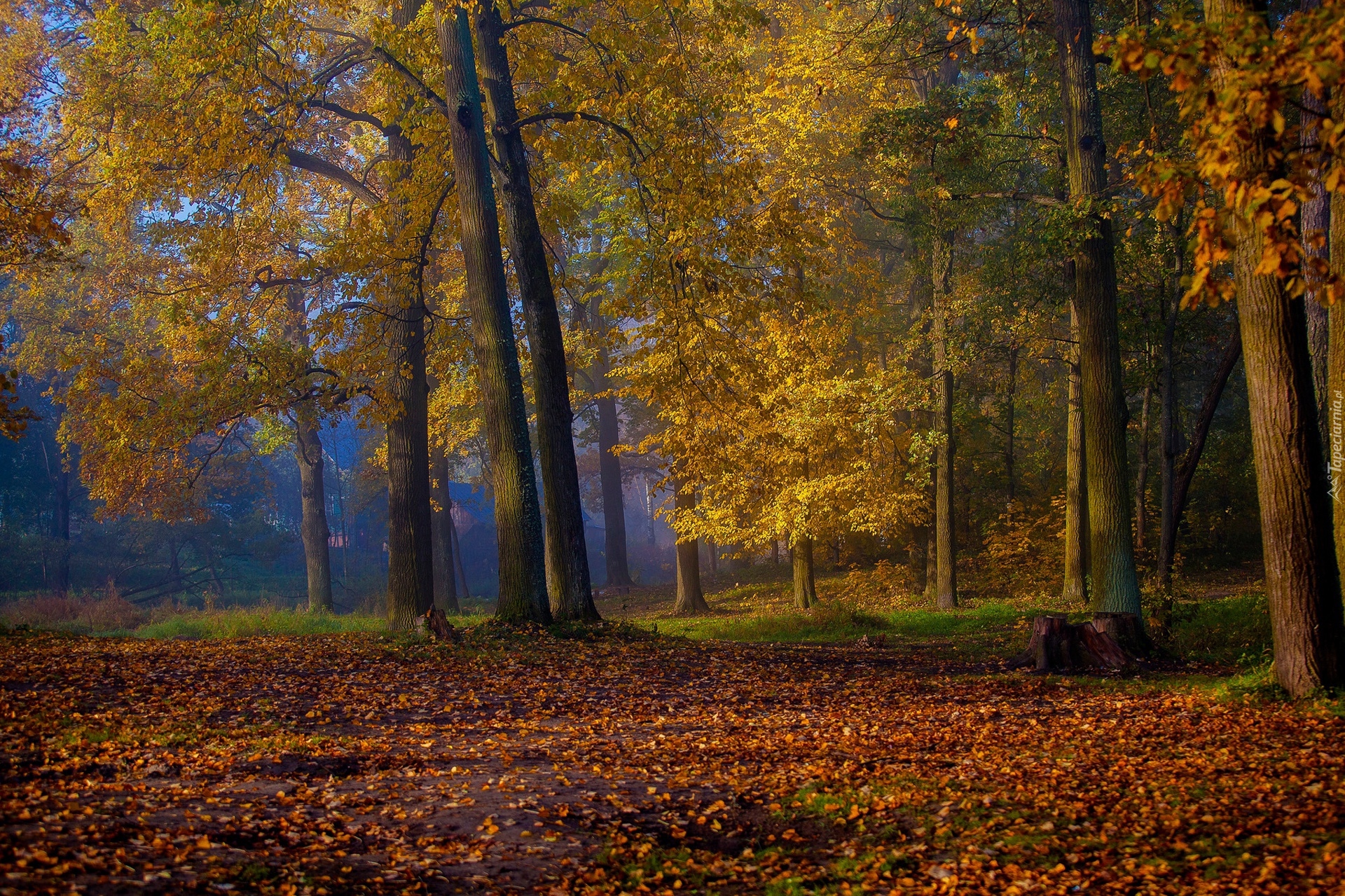 Edytor tapety: Drzewa w parku jesienią