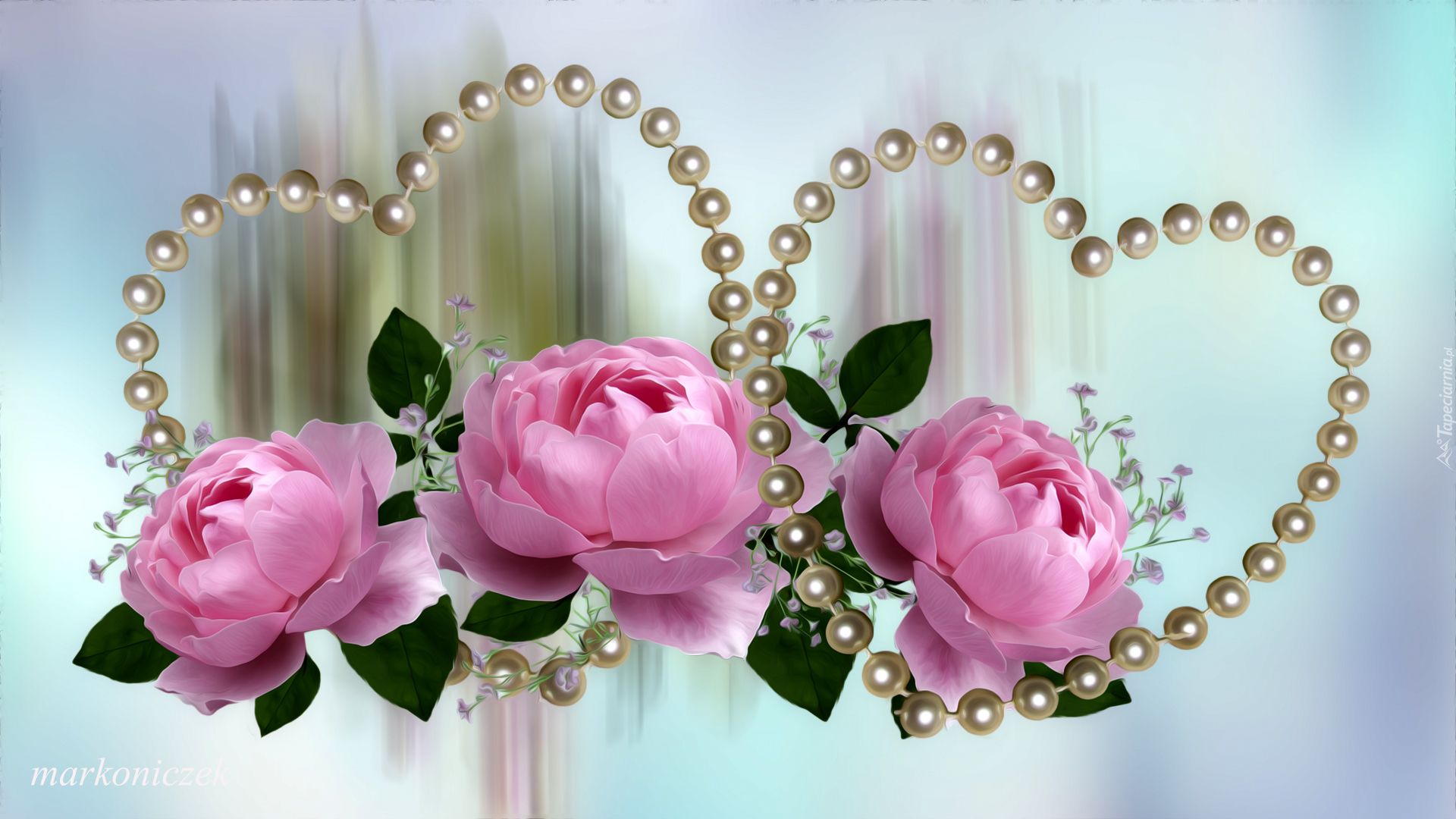Edytor tapety: Róże w perłowych sercach