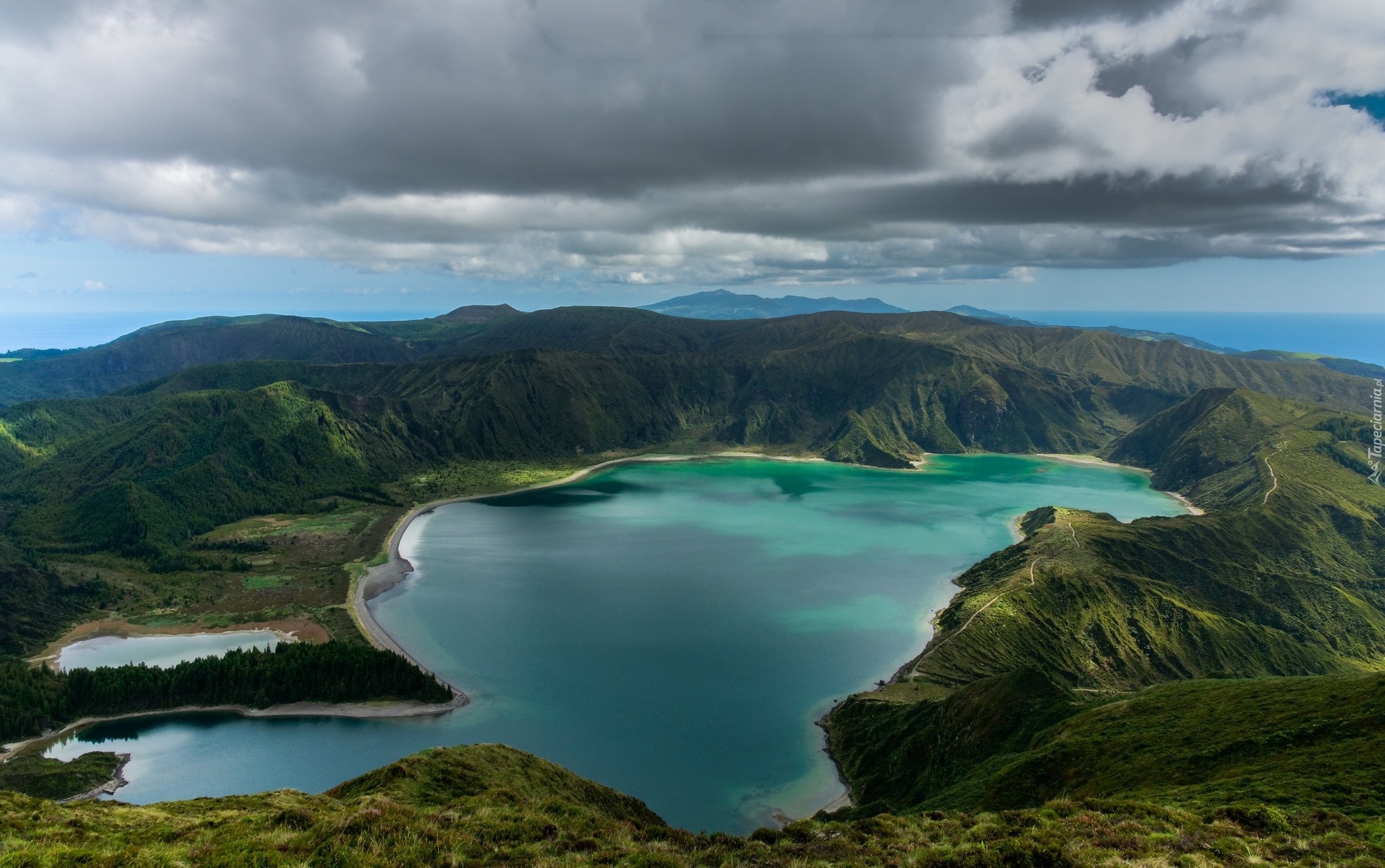 Edytor tapety: Ciemnie chmury nad górskim jeziorem