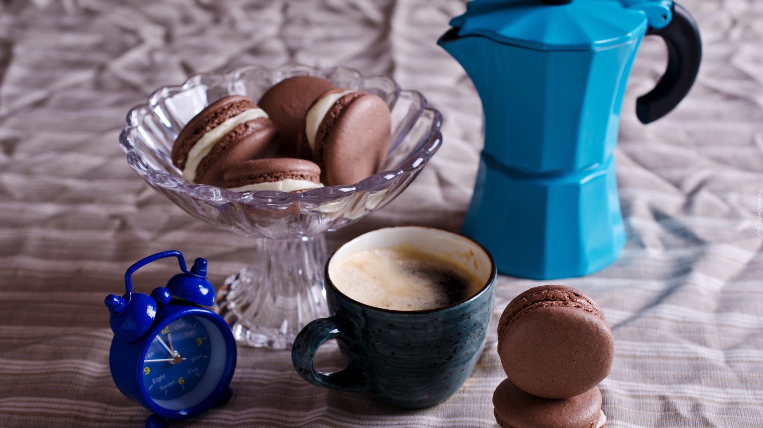 Edytor tapety: Patera z makaronikami obok kawy