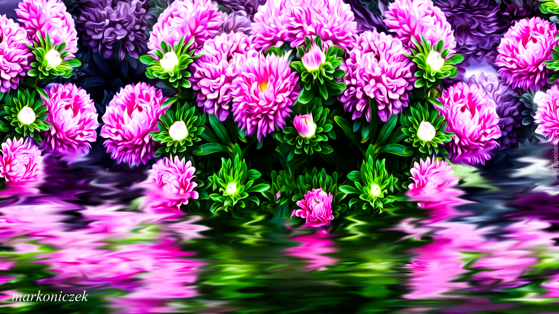 Edytor tapety: Różowe astry w grafice