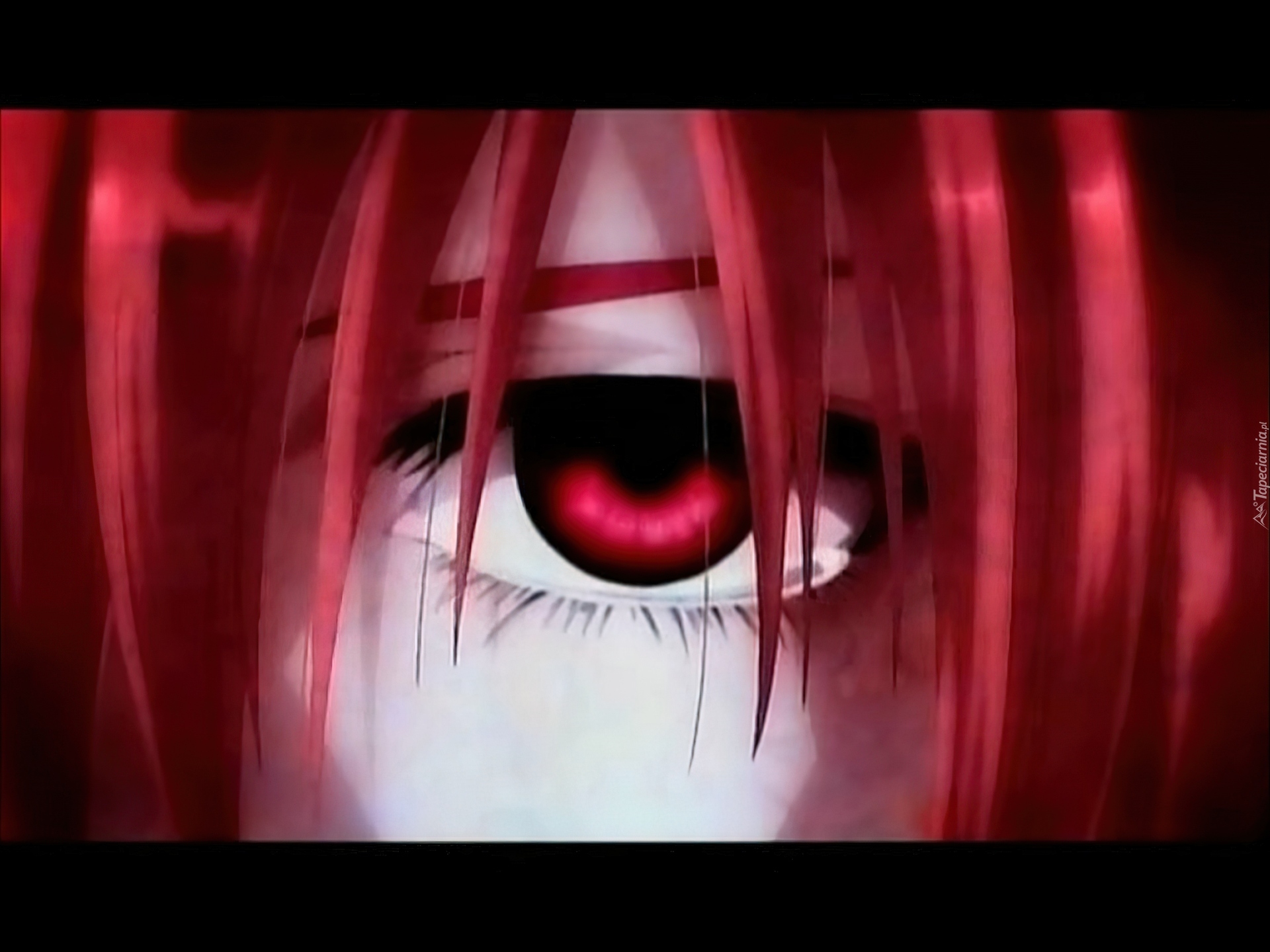 Edytor tapety: Elfen Lied, spojrzenie, oko, twarz, ruda