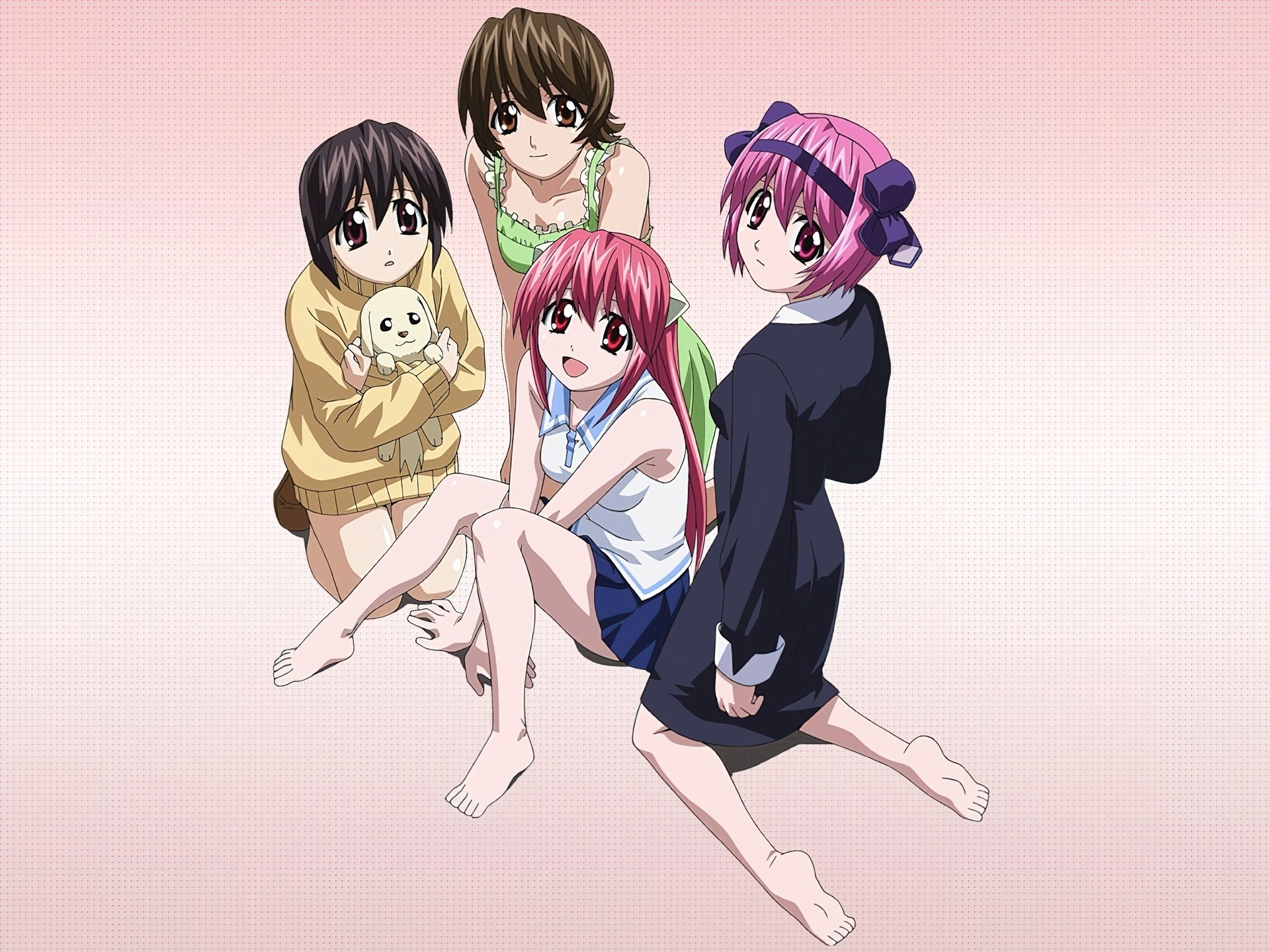 Edytor tapety: Elfen Lied, koleżanki, dziewczyny, spojrzenie