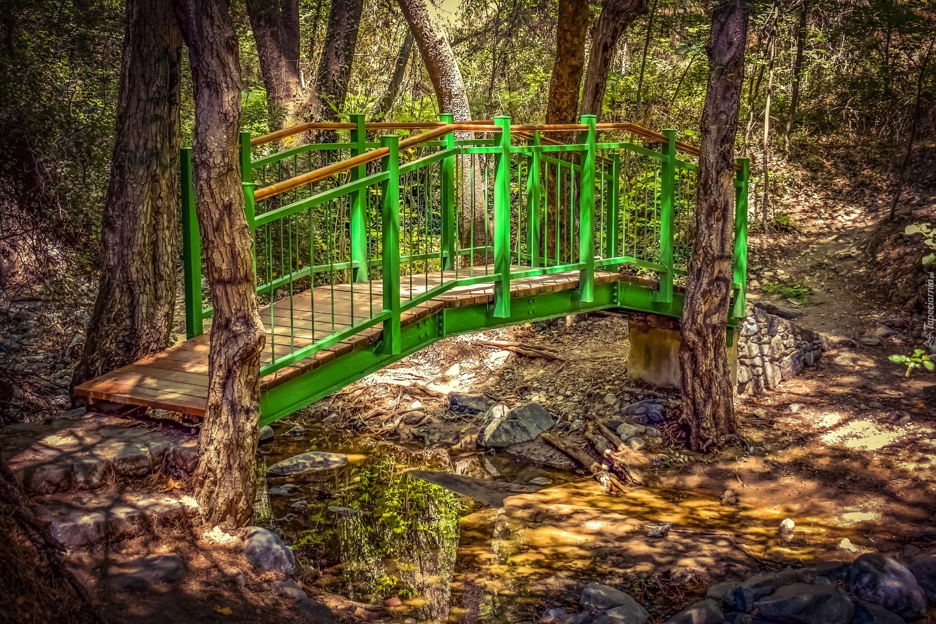 Edytor tapety: Zielony mostek w lesie