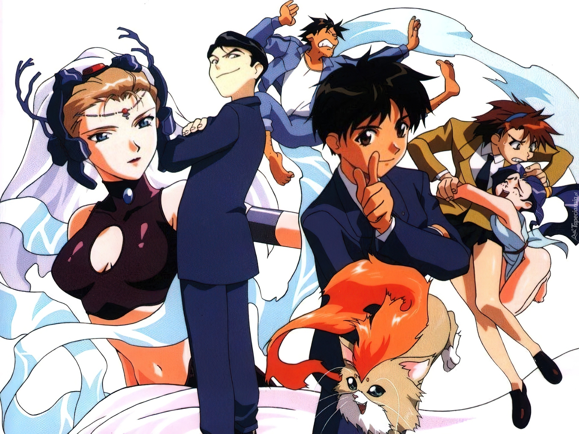 Edytor tapety: El Hazard, postacie, kot, garnitur