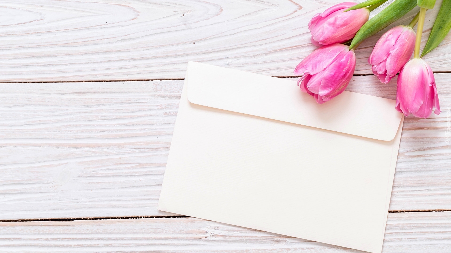 Edytor tapety: Koperta obok tulipanów