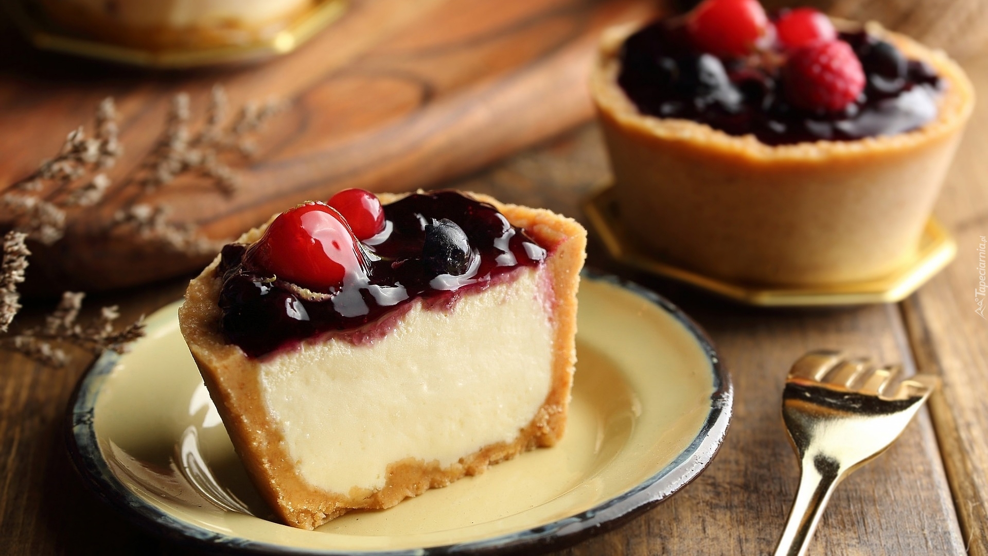Edytor tapety: Kawałek babeczki z owocami na talerzu
