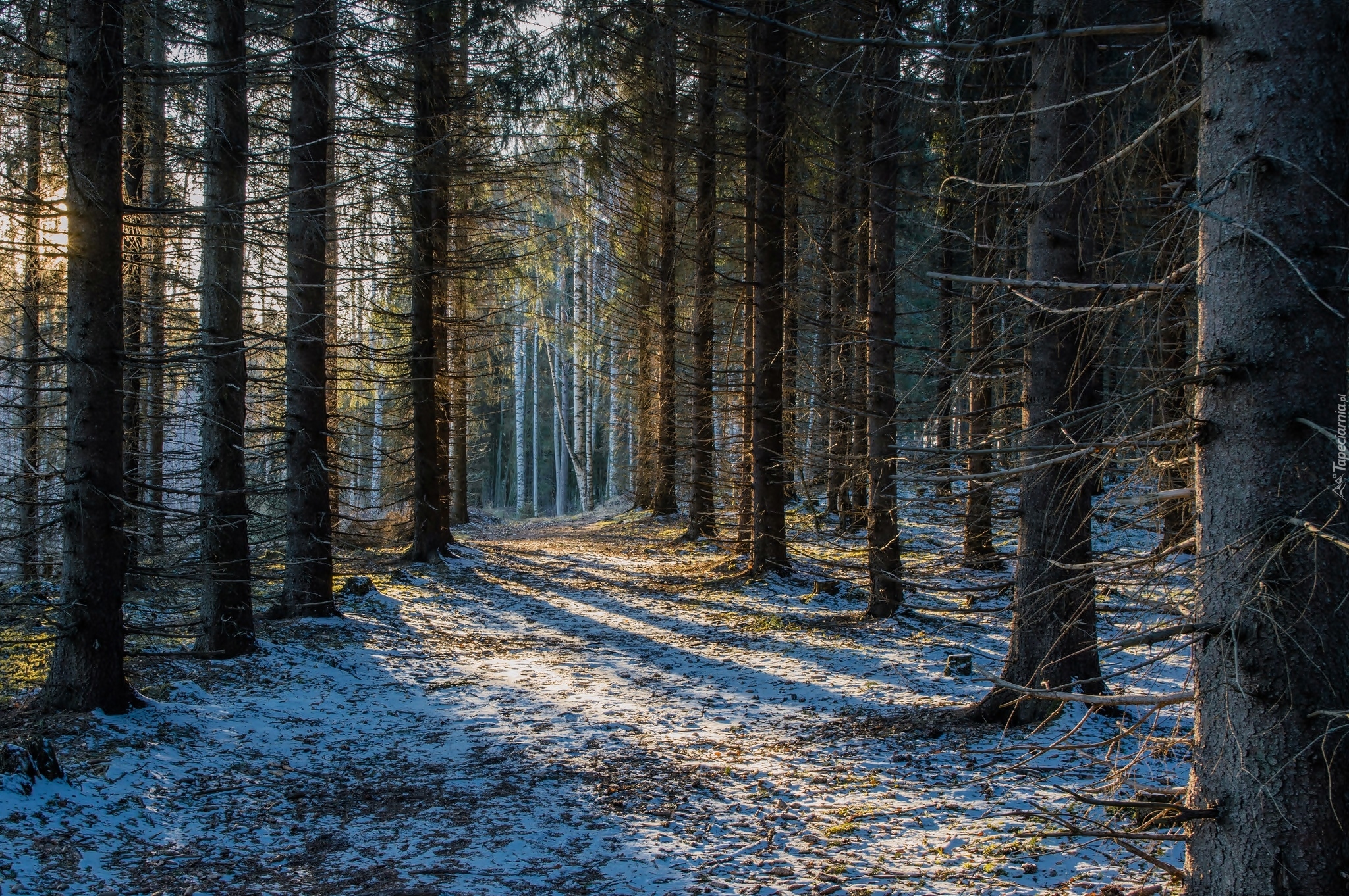 Edytor tapety: Słoneczny dzień w zimowym lesie