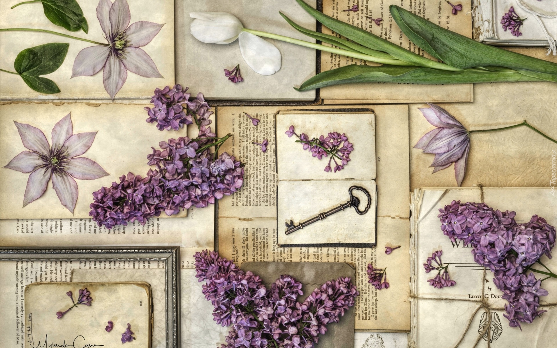 Edytor tapety: Kwiaty ułożone na książkach