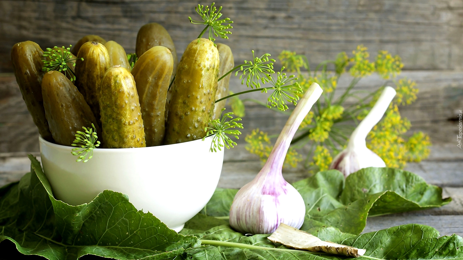 Edytor tapety: Kiszone ogórki w miseczce z koperkiem