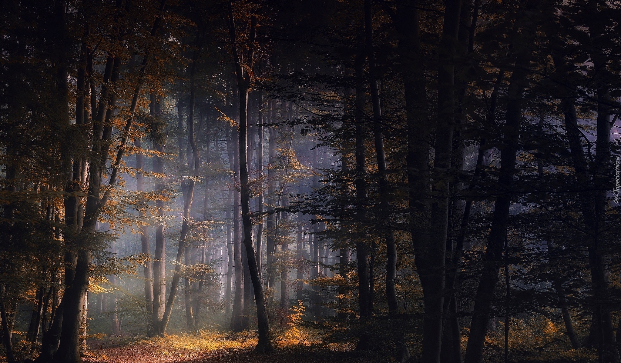 Edytor tapety: Rozświetlony las jesienią