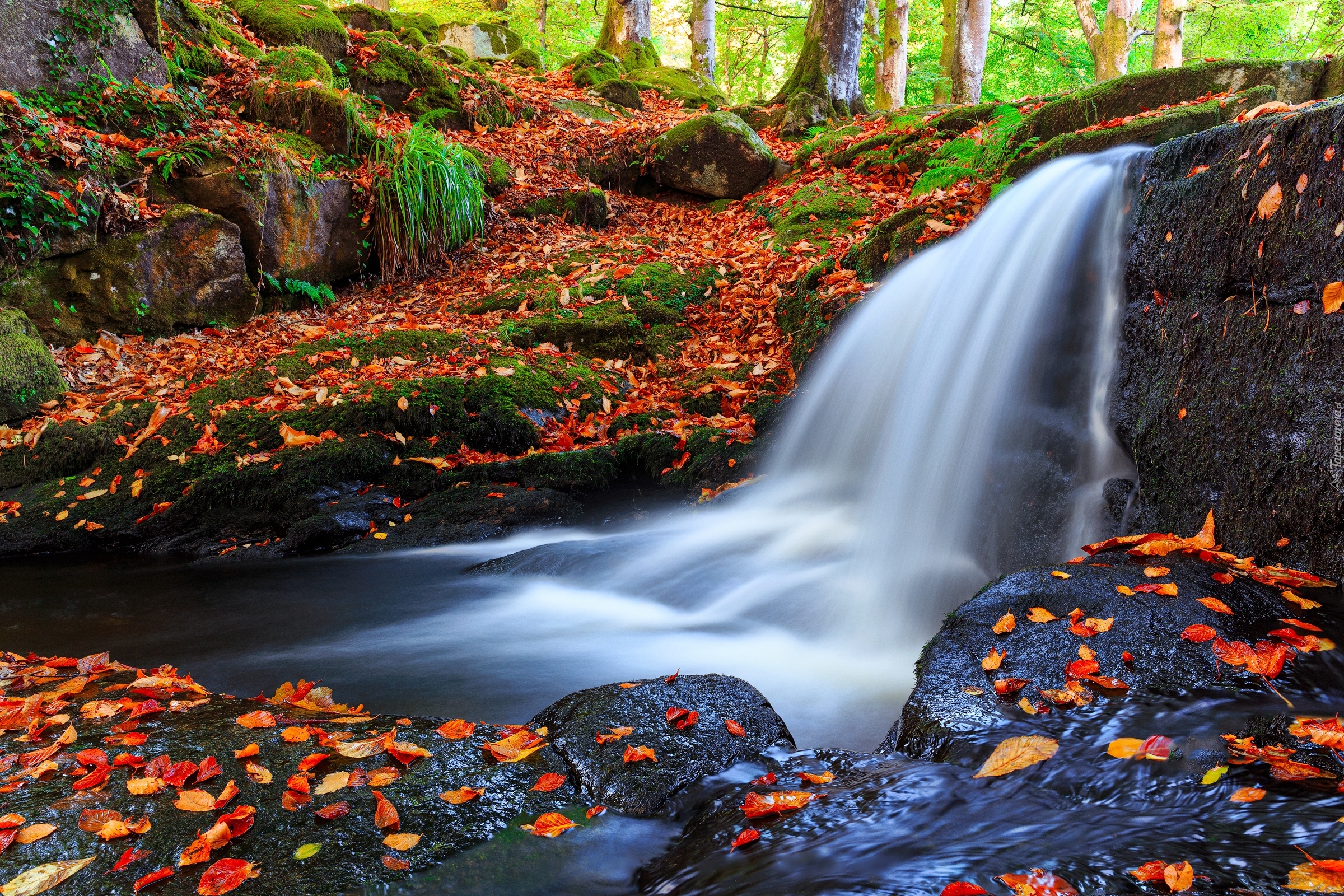 Edytor tapety: Leśny wodospad jesienią