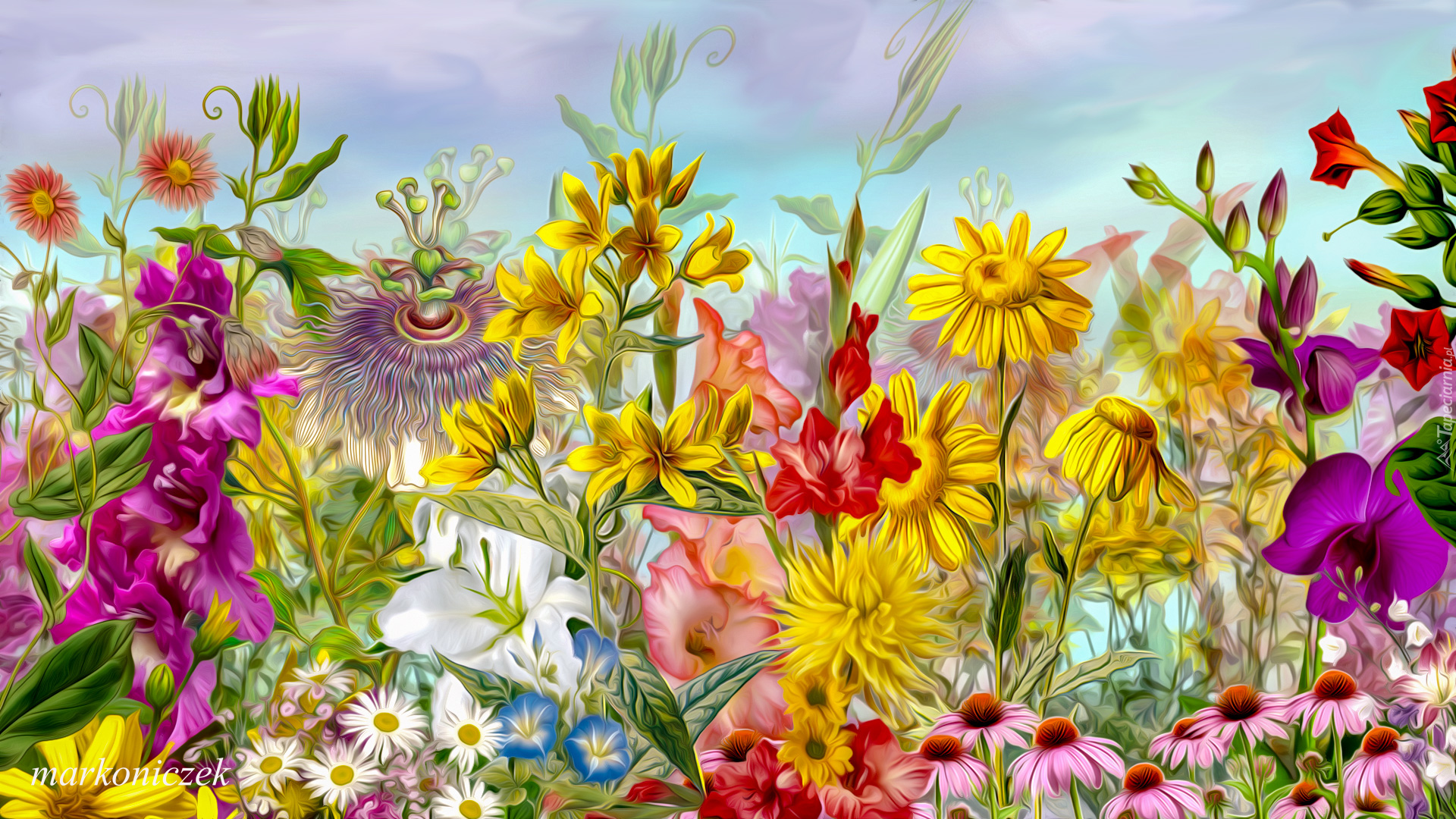 Edytor tapety: Kolorowe różne kwiaty w grafice