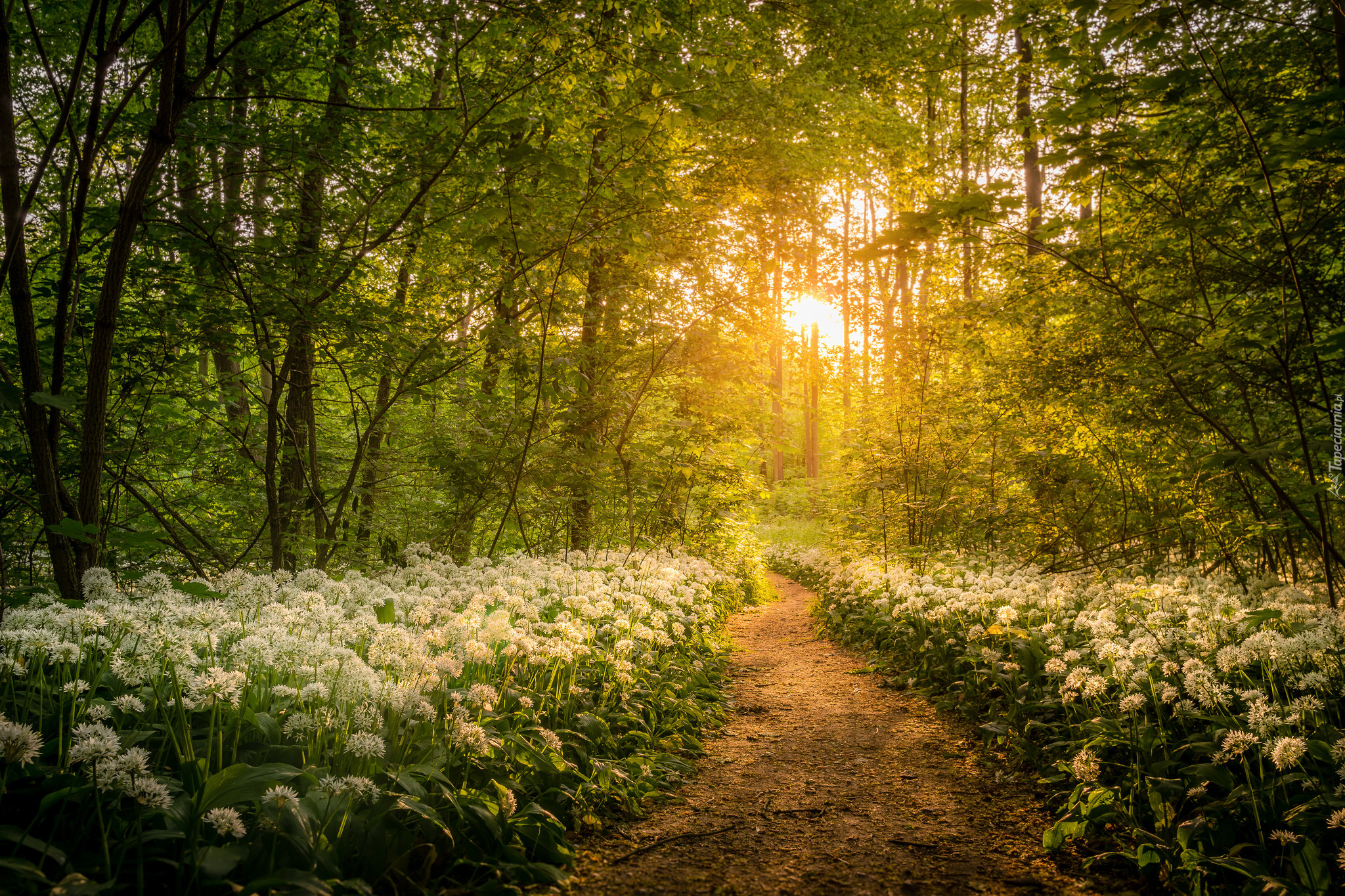 Edytor tapety: Dróżka pomiędzy czosnkiem niedźwiedzim w lesie