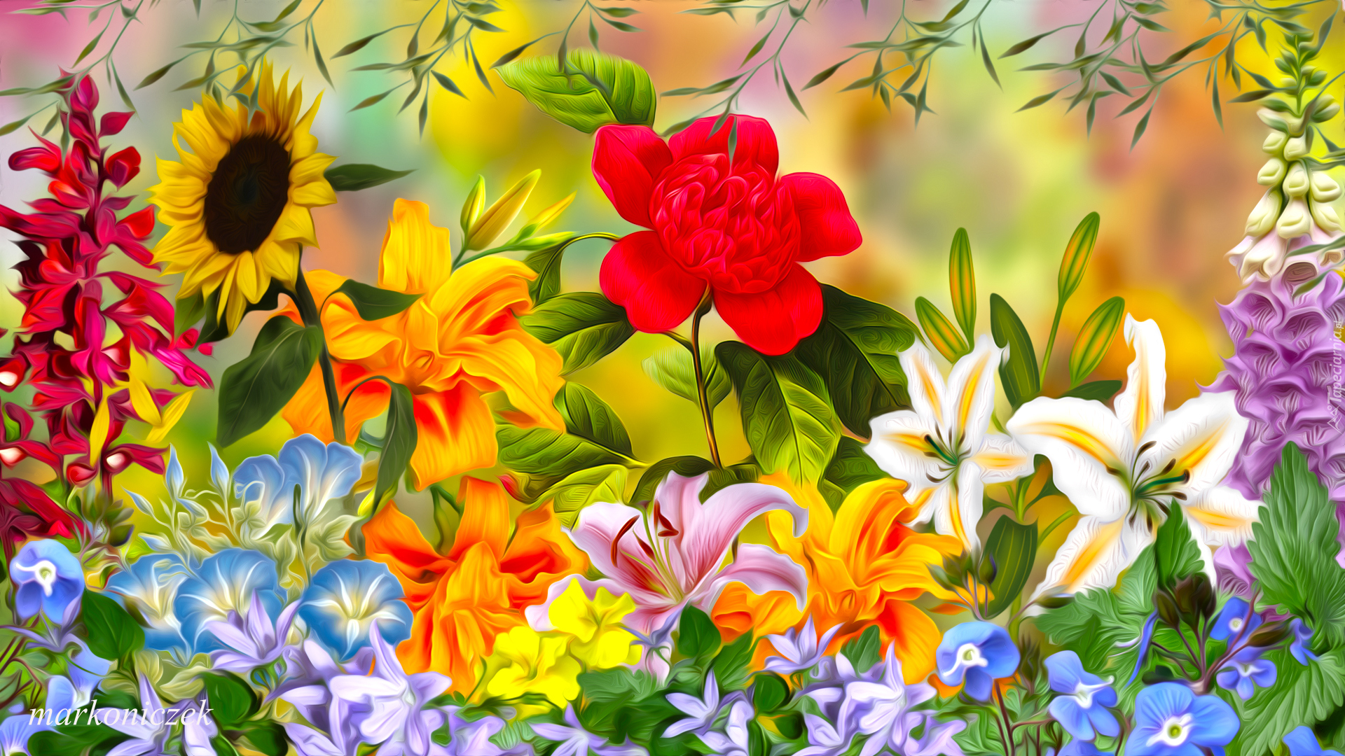 Edytor tapety: Kolorowe różnorodne kwiaty