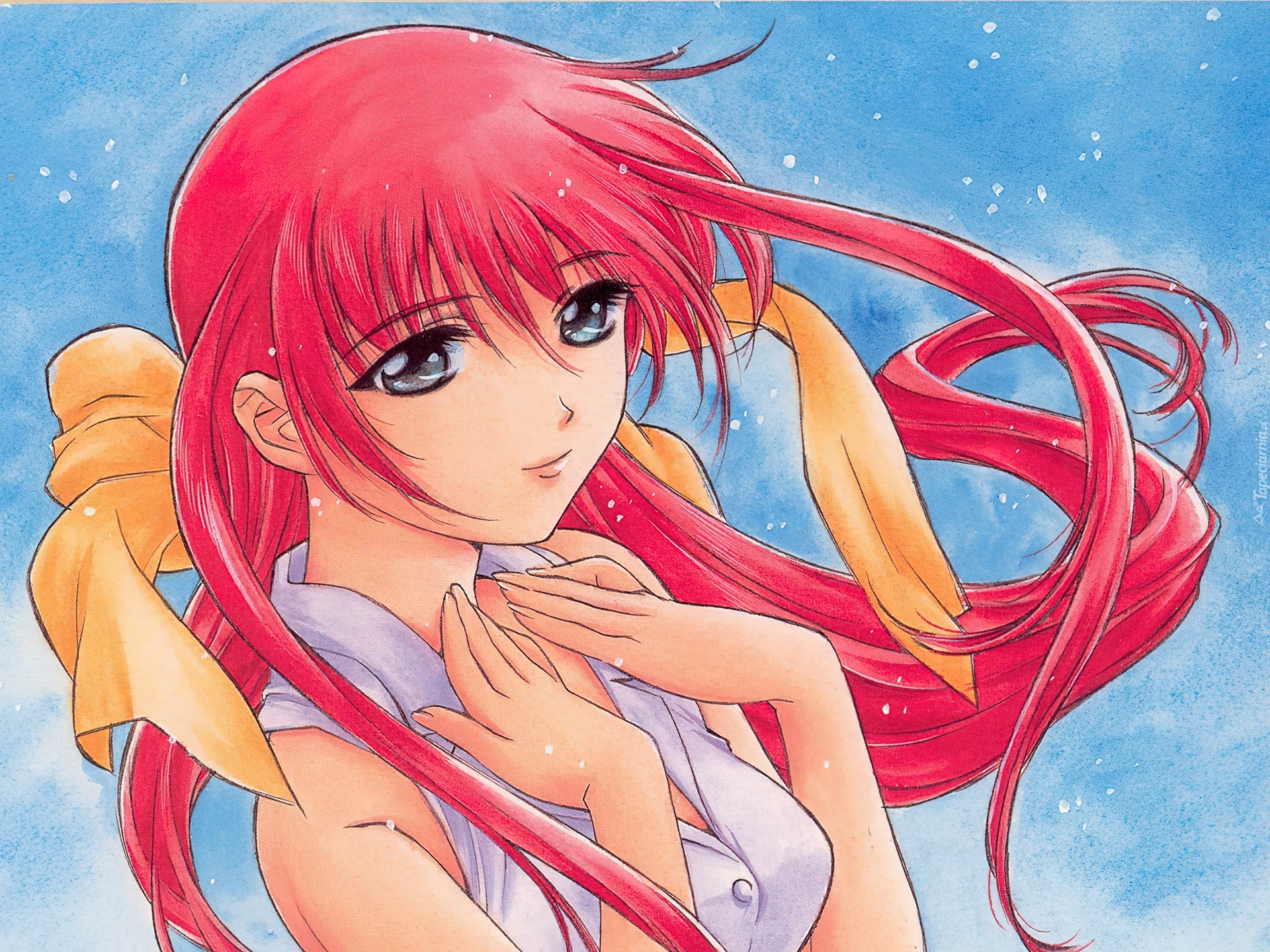 Edytor tapety: Double Cast, niebo, chusta, oczy, dziewczyna