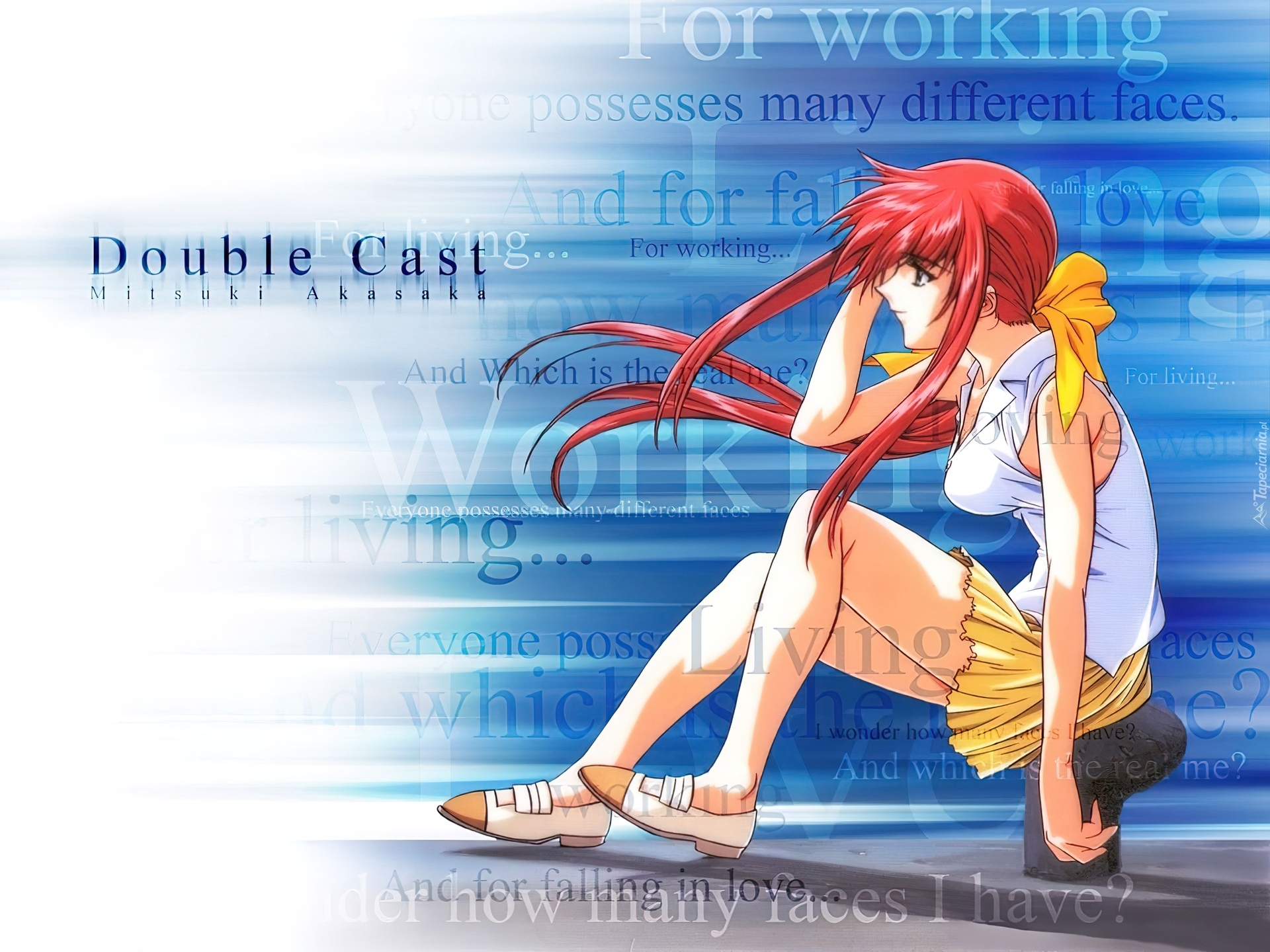 Edytor tapety: Double Cast, napisy, dziewczyna, siedzi