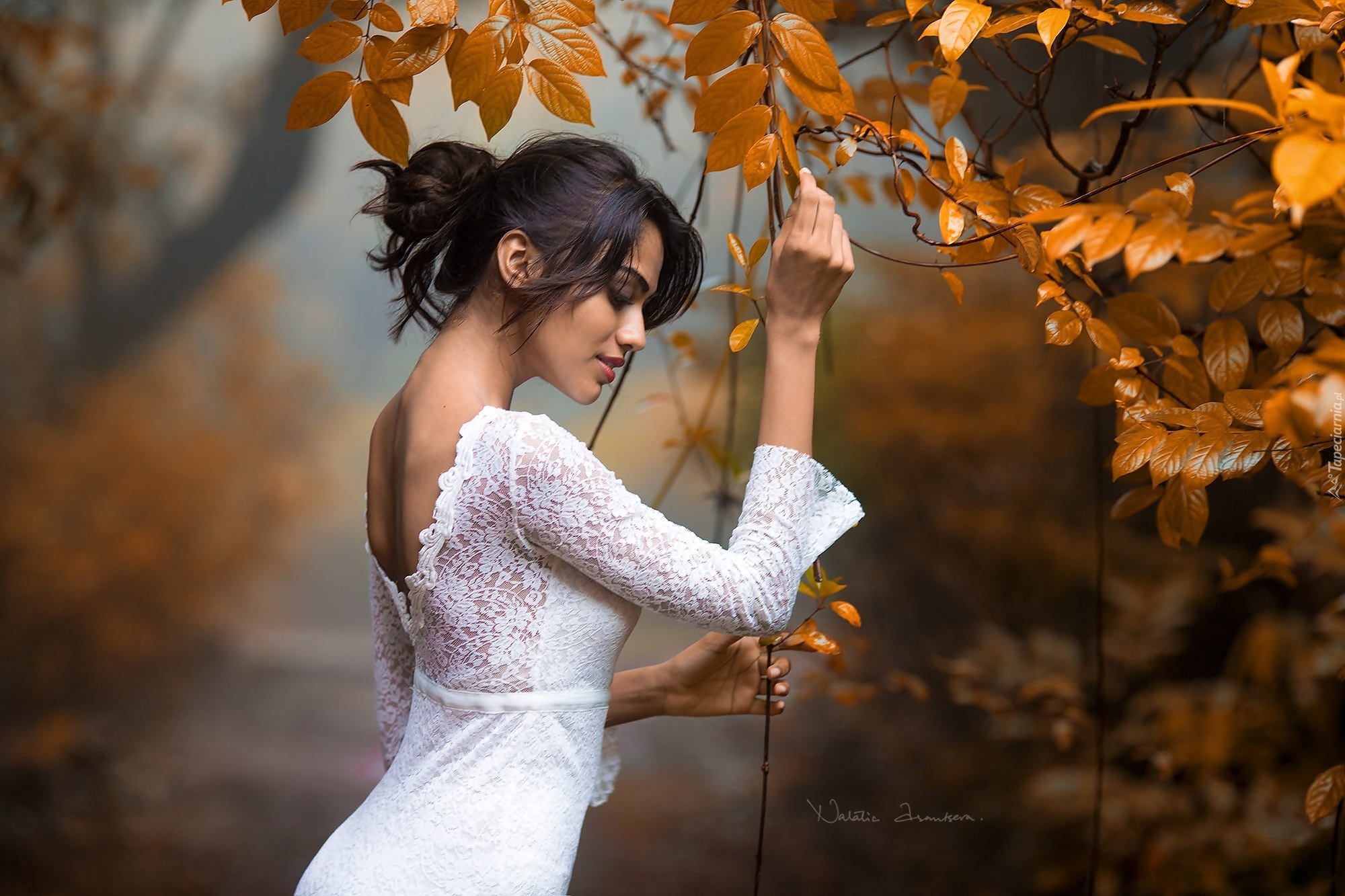 Edytor tapety: Dziewczyna w białej koronkowej sukience