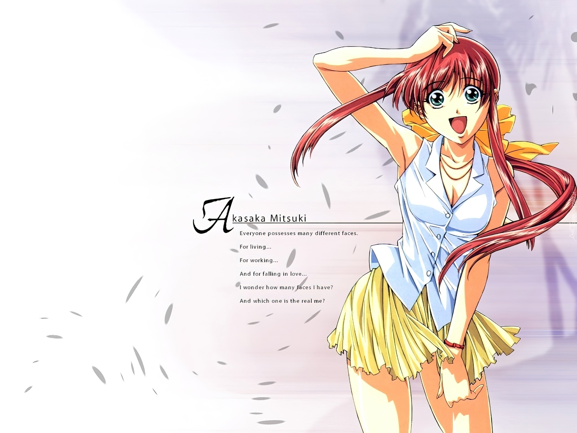 Edytor tapety: Double Cast, uśmiech, dziewczyna, napisy, spódniczka