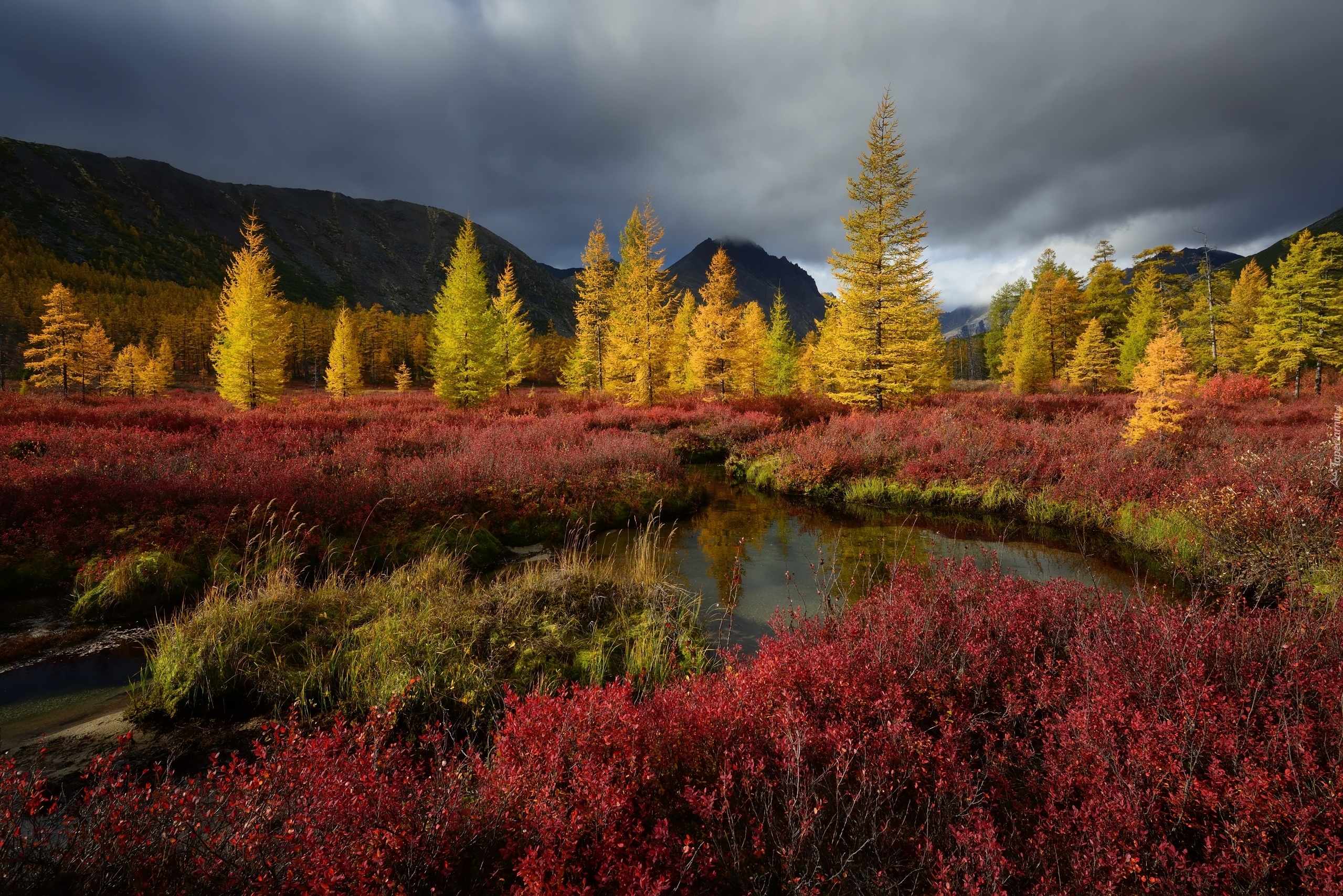 Edytor tapety: Rzeka Kołyma w jesiennej scenerii