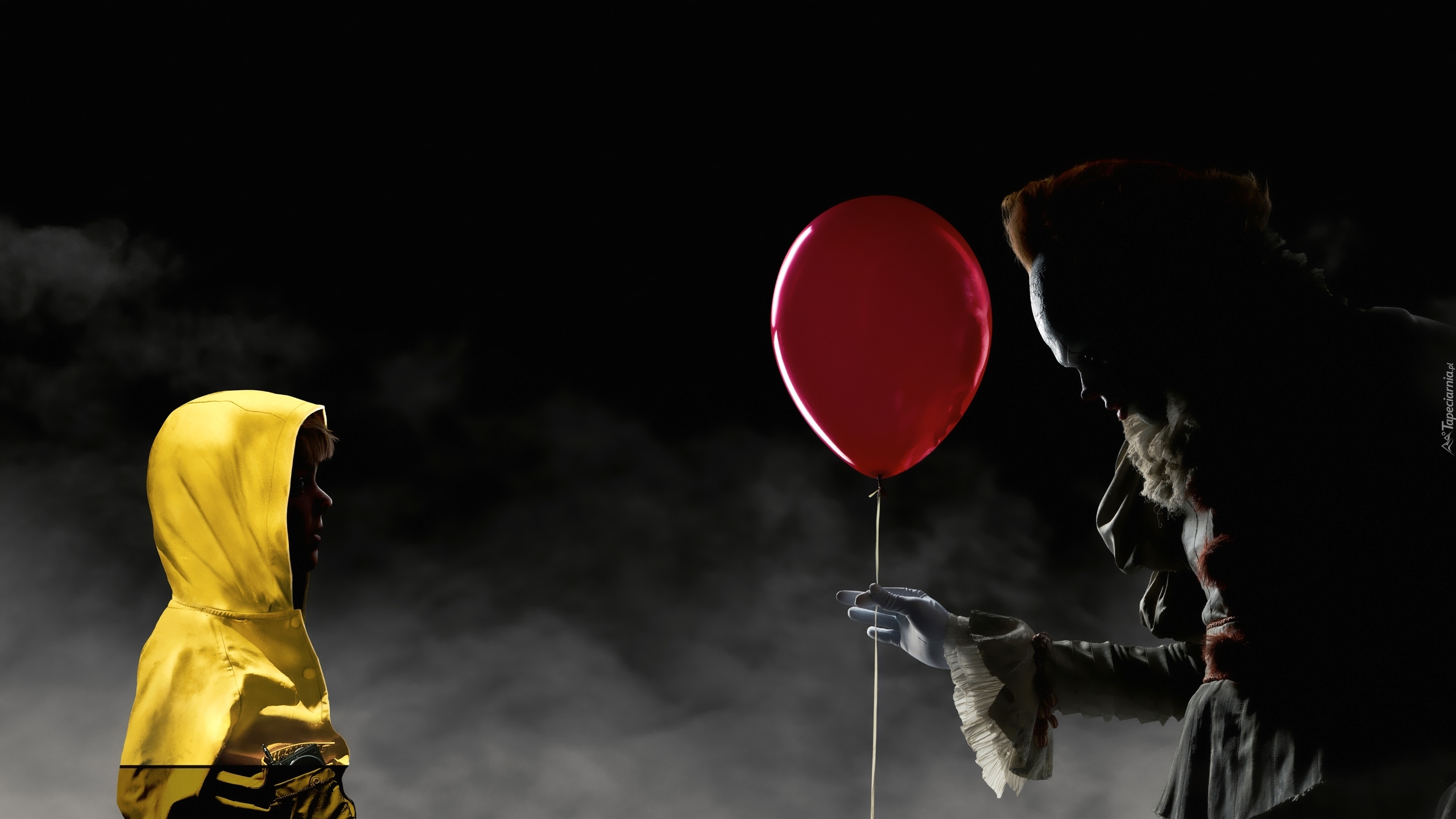 Edytor tapety: Klaun Pennywise z balonem i dziecko