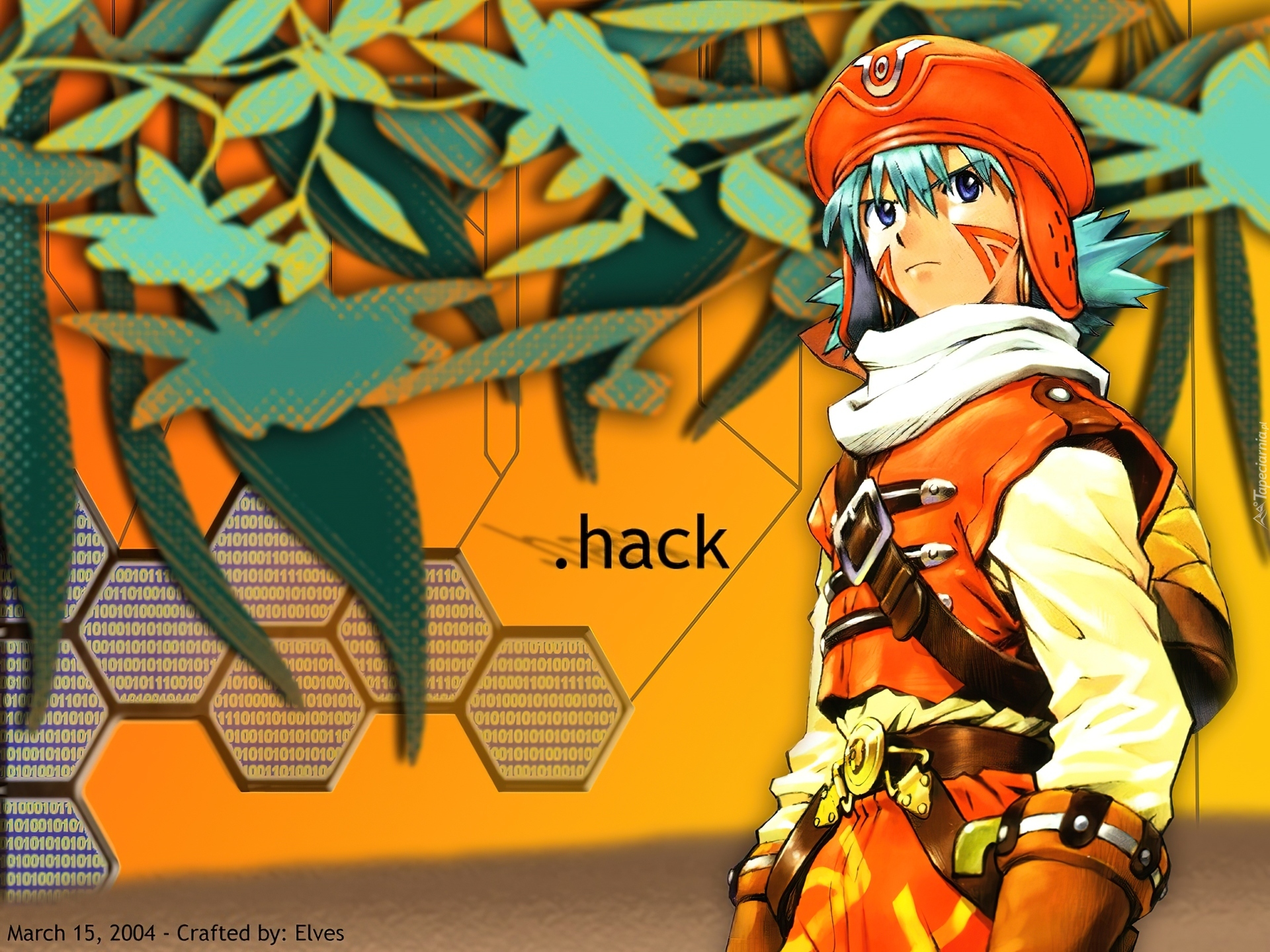 Edytor tapety: Dot Hack, liście, chłopak, czapka, zbroja