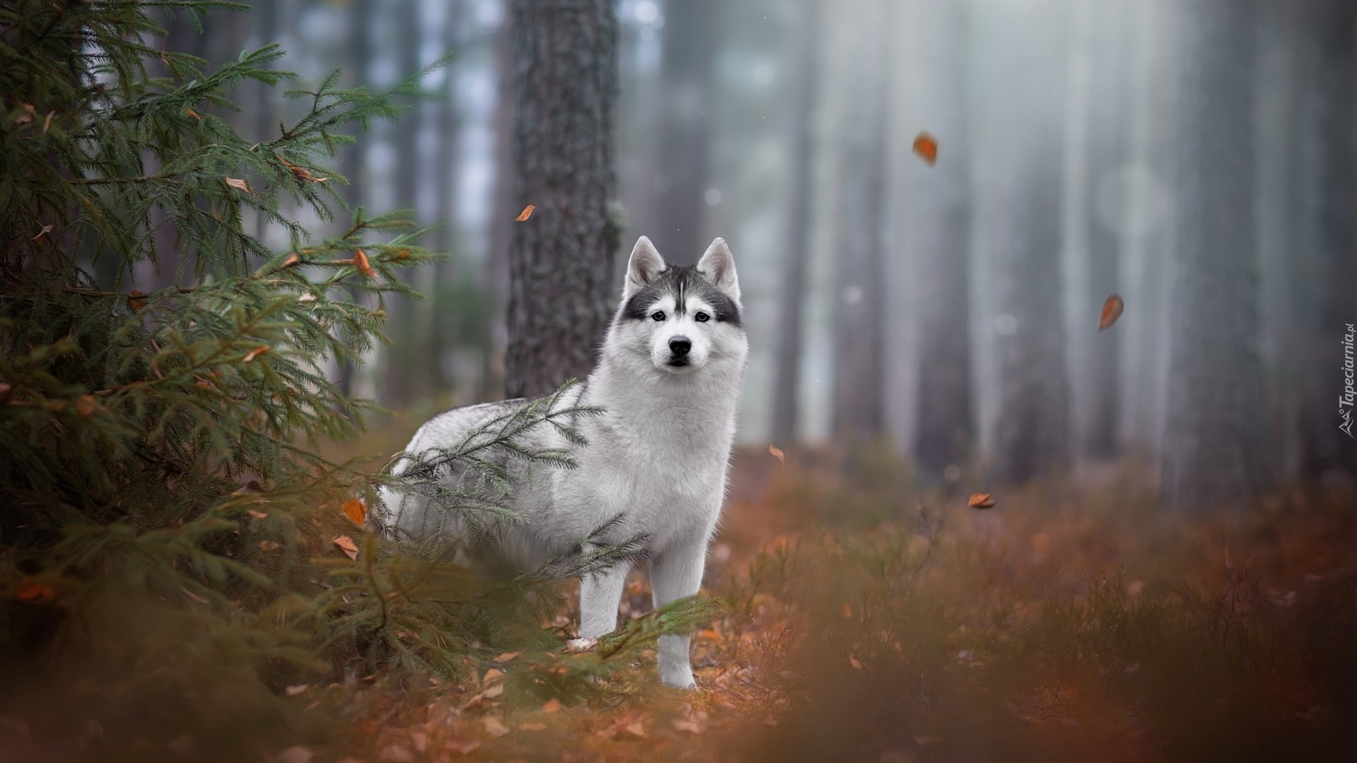 Edytor tapety: Siberian husky obok drzewa