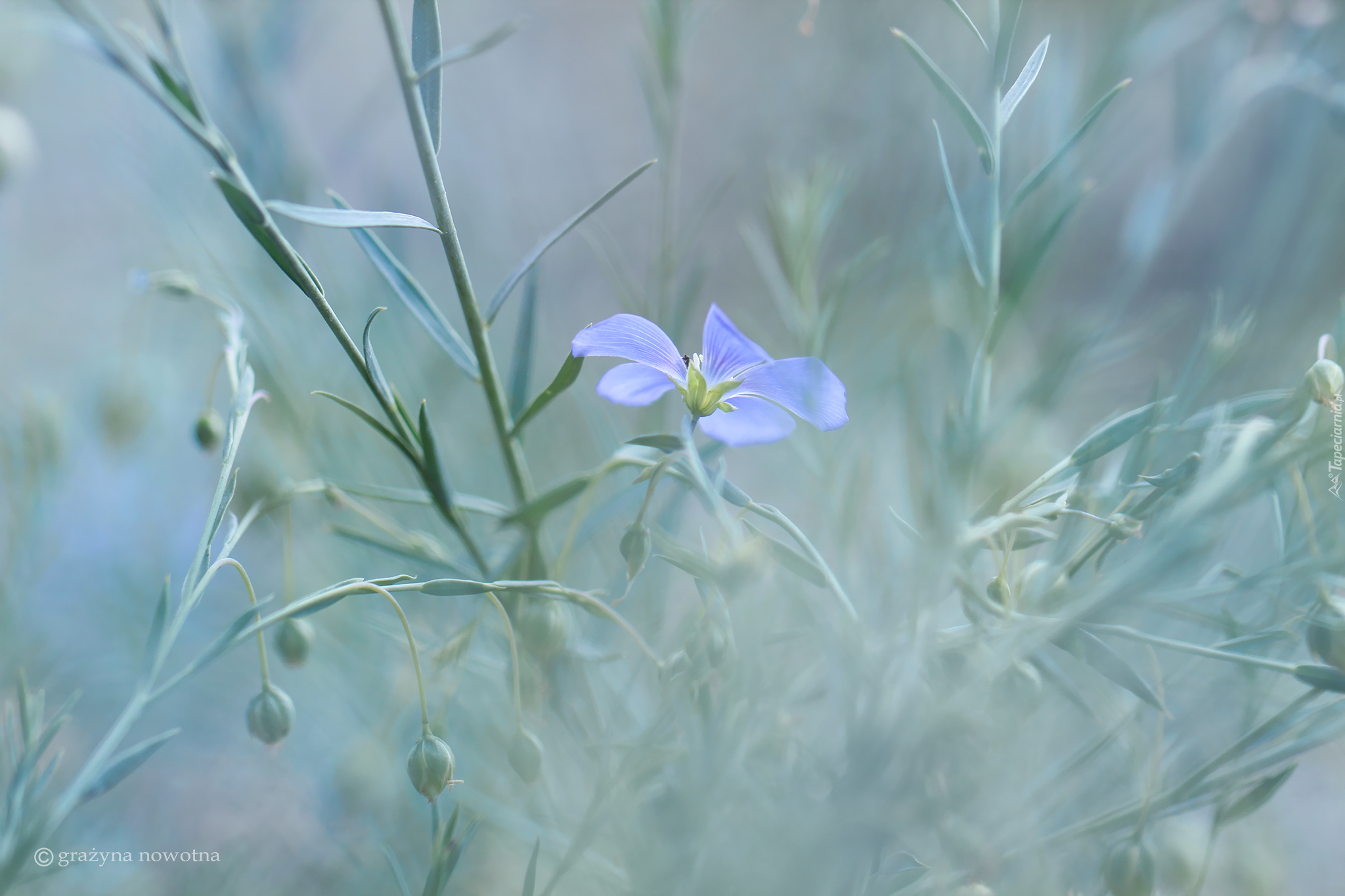 Edytor tapety: Niebieski kwiatek wśród gałązek