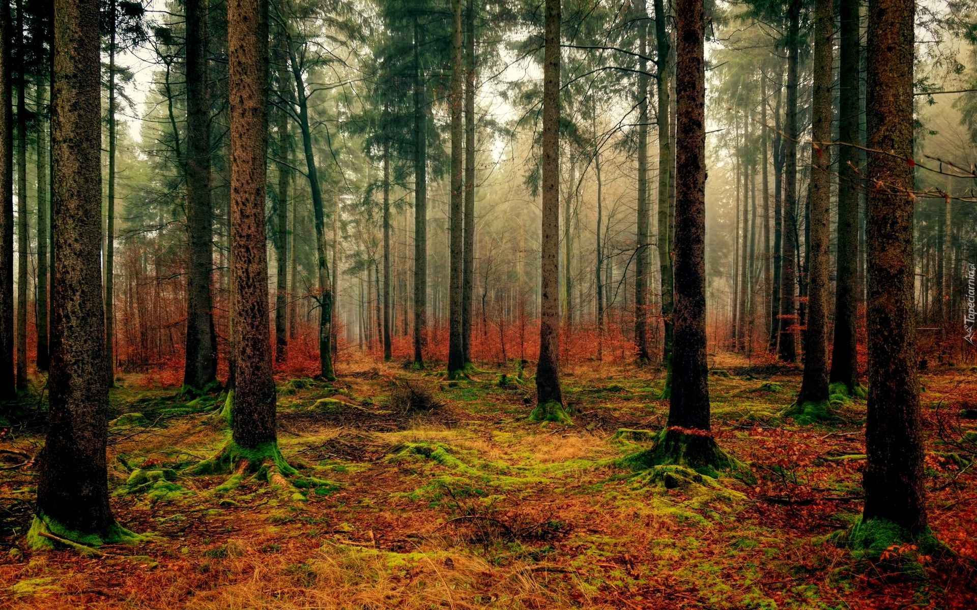 Edytor tapety: Kolorowe runo leśne w jesiennym lesie