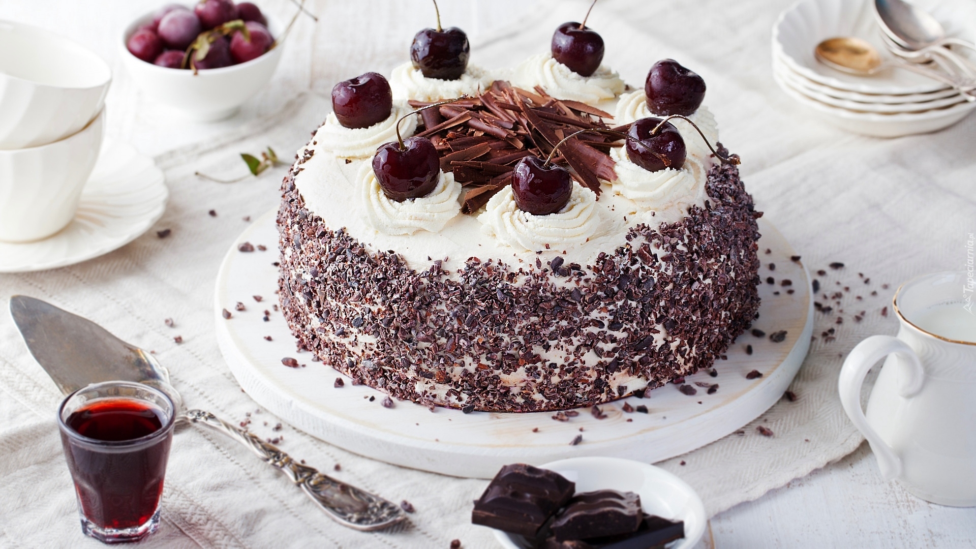Edytor tapety: Tort z wiśniami na paterze