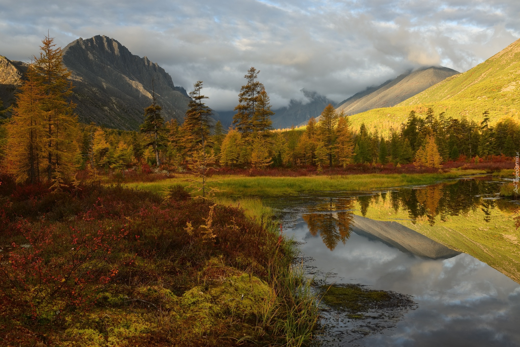 Edytor tapety: Brzeg jeziora Jacka Londona na tle gór