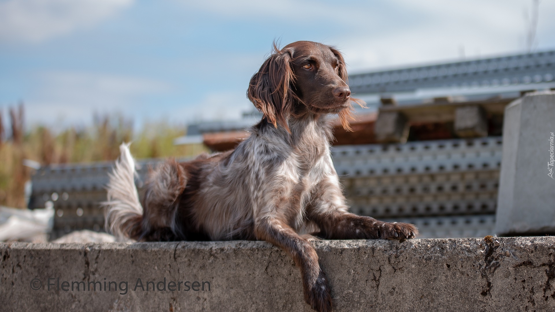 Edytor tapety: Seter angielski na murku
