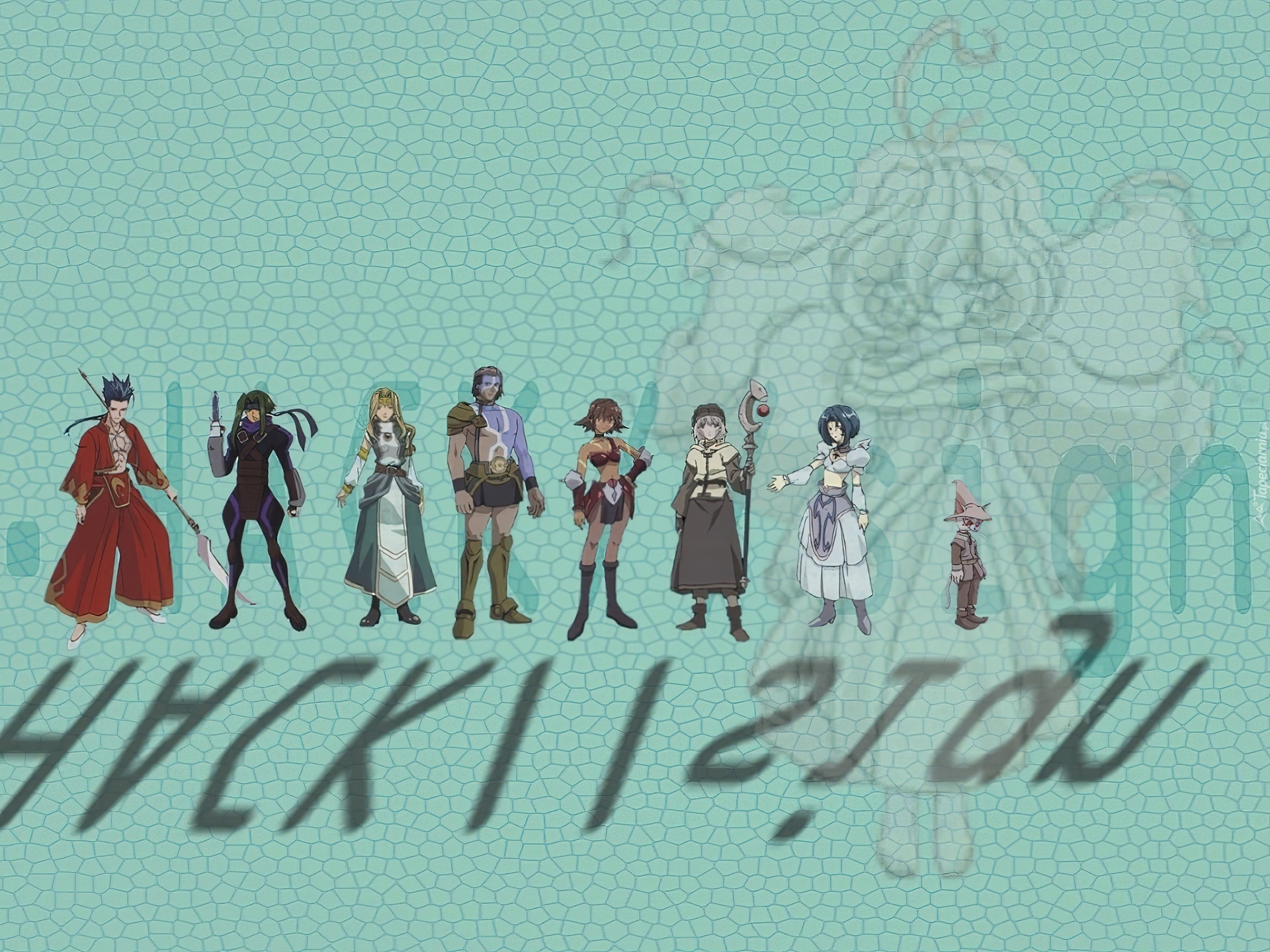 Edytor tapety: Dot Hack, napis, postacie, broń