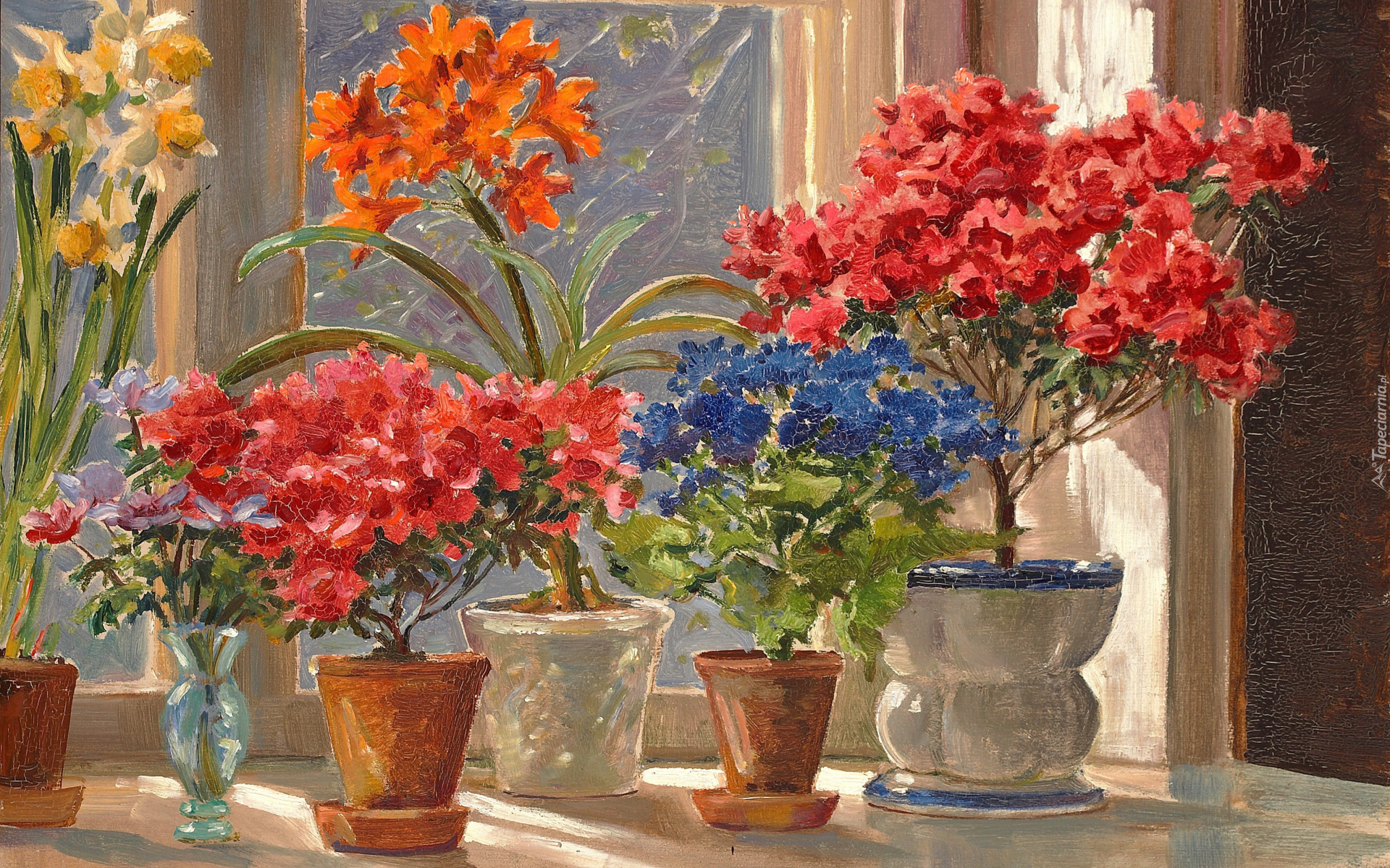 Edytor tapety: Kwiaty w doniczkach przy oknie