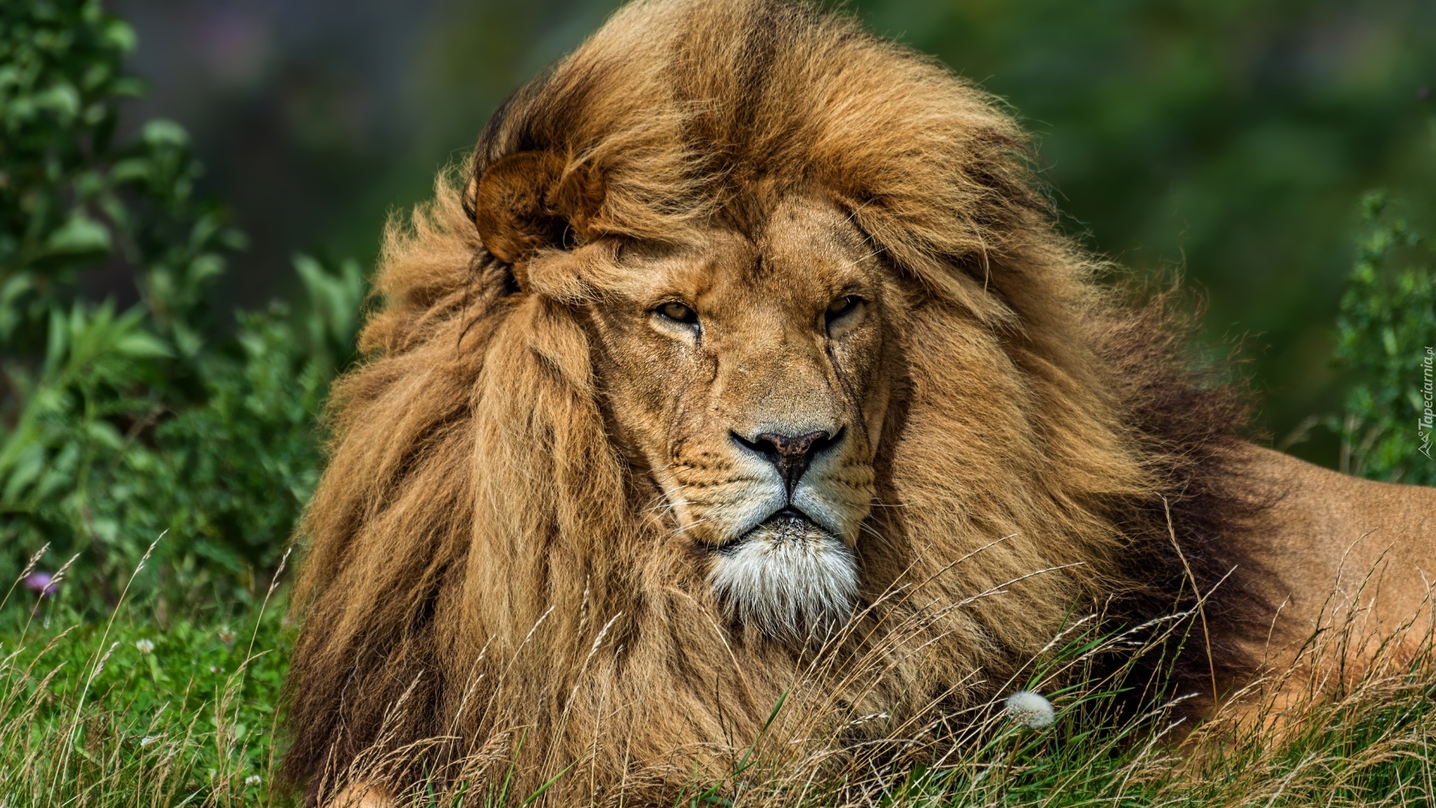 Edytor tapety: Leżący lew na trawie