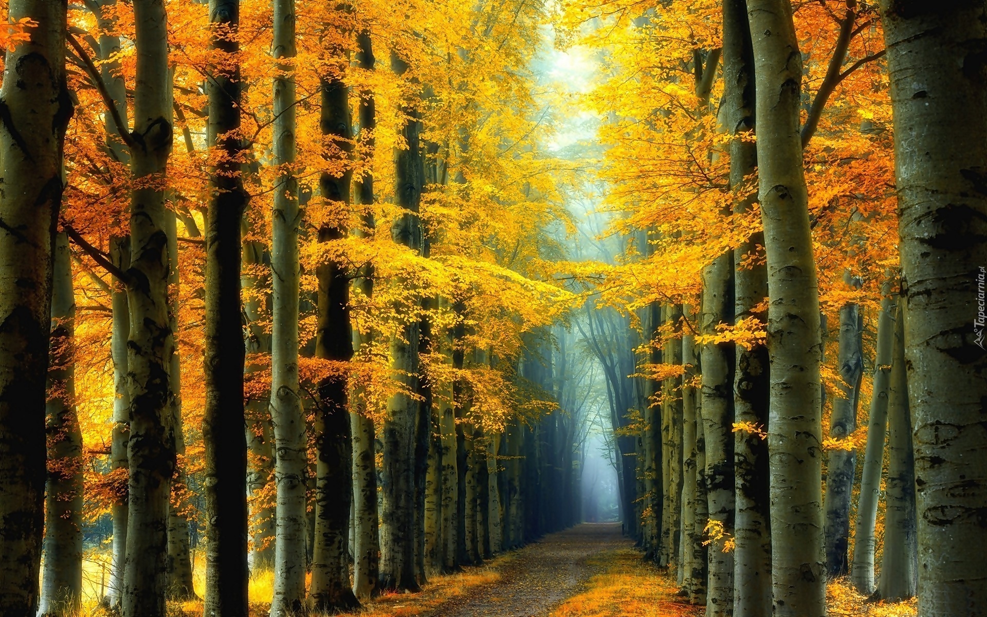 Edytor tapety: Topole osikowe wzdłuż drogi