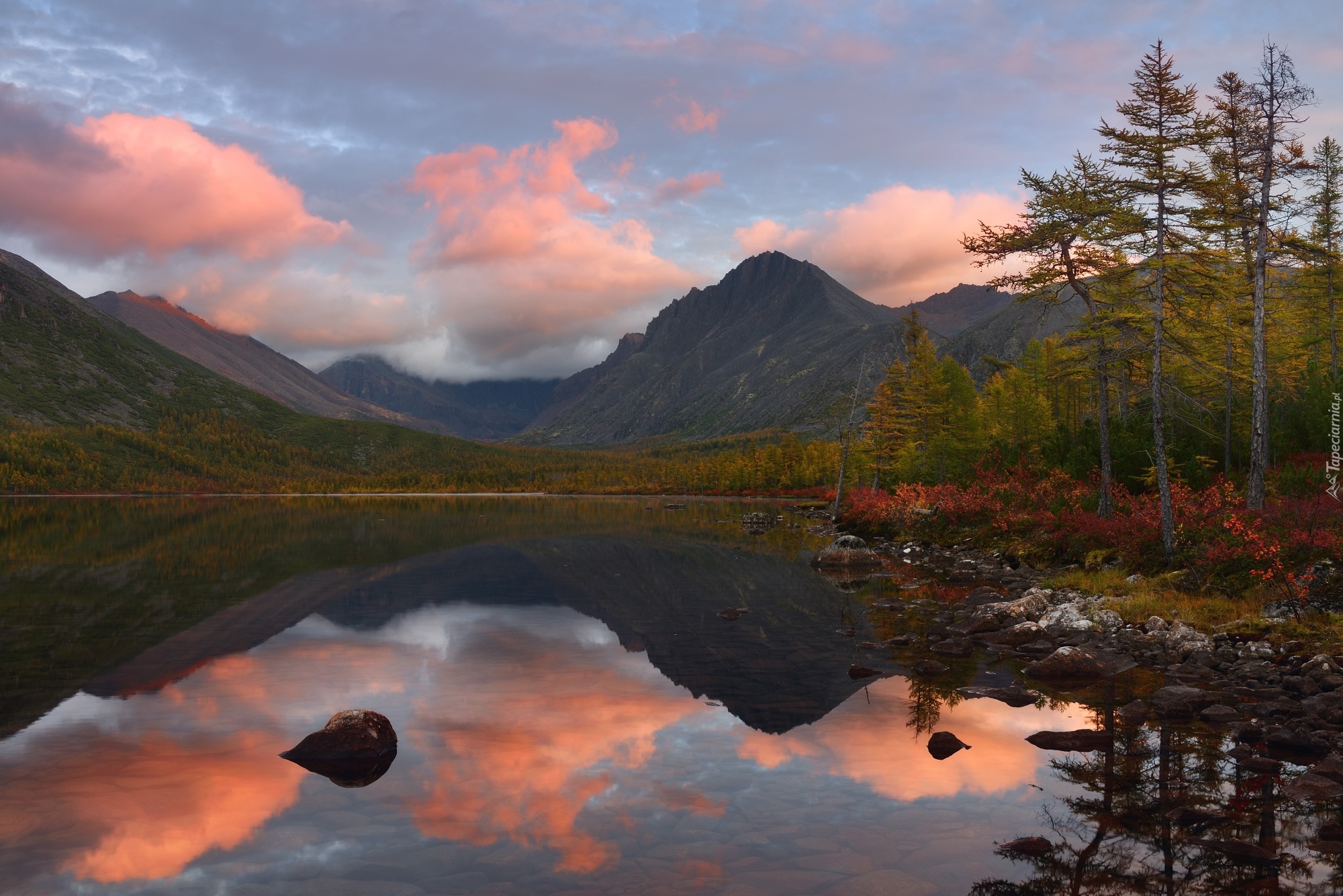 Edytor tapety: Jezioro Jack London o wschodzie słońca