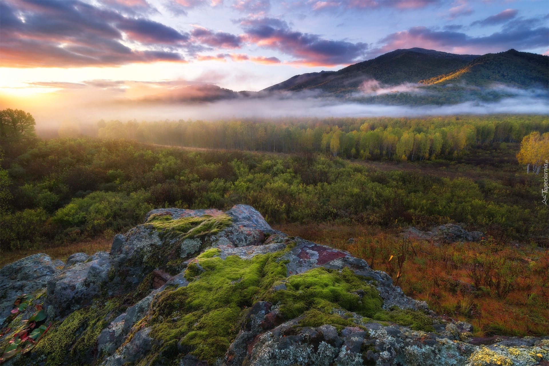 Edytor tapety: Góry Ałtaj spowite mgłą